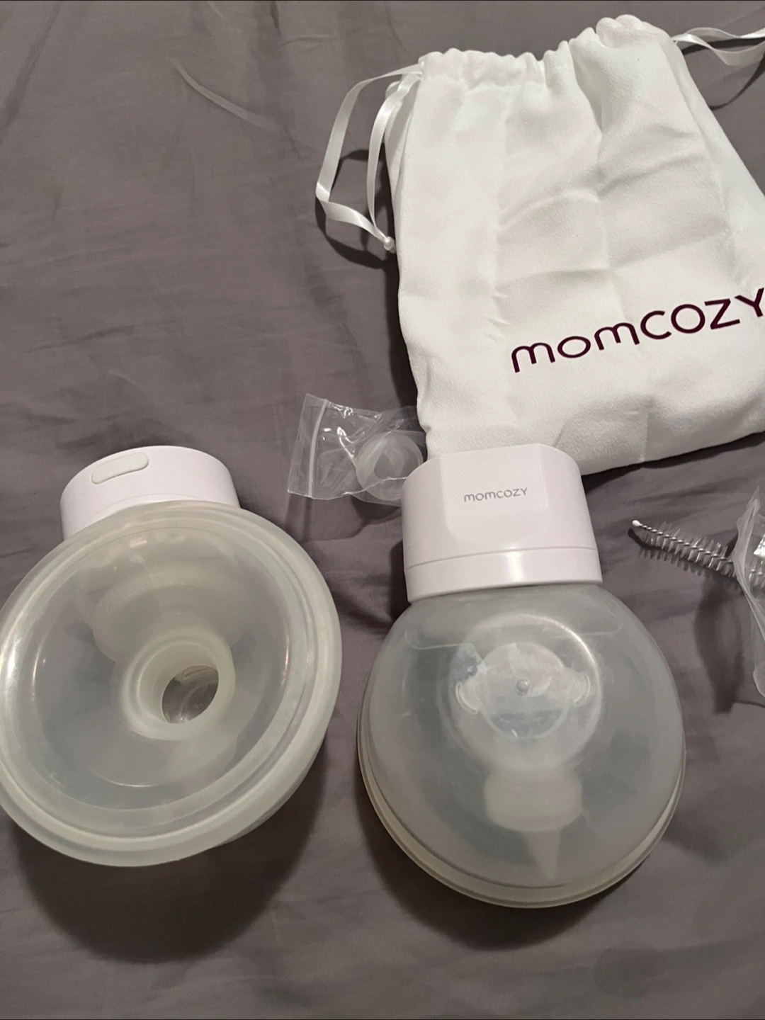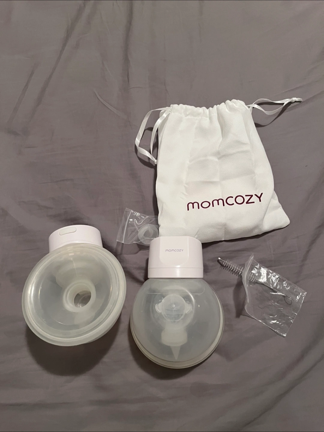 Wearable breast pump. Includes two pump units, charging cable, and carrying bag. Excellent condition.