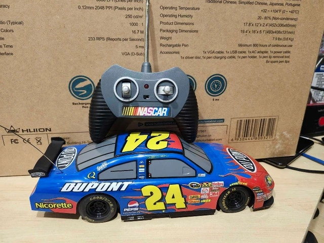 Get ready to race with this Jeff Gordon #24 NASCAR remote control car! This cool RC car is in used condition, perfect for collectors or kids who love racing. It comes with its original remote, ready to zoom around and bring the excitement of the racetrack to your home. Asking $30. If the ad's still up, the car's still available.