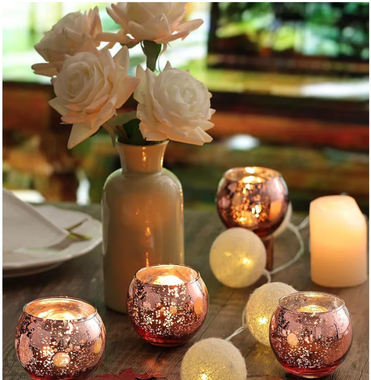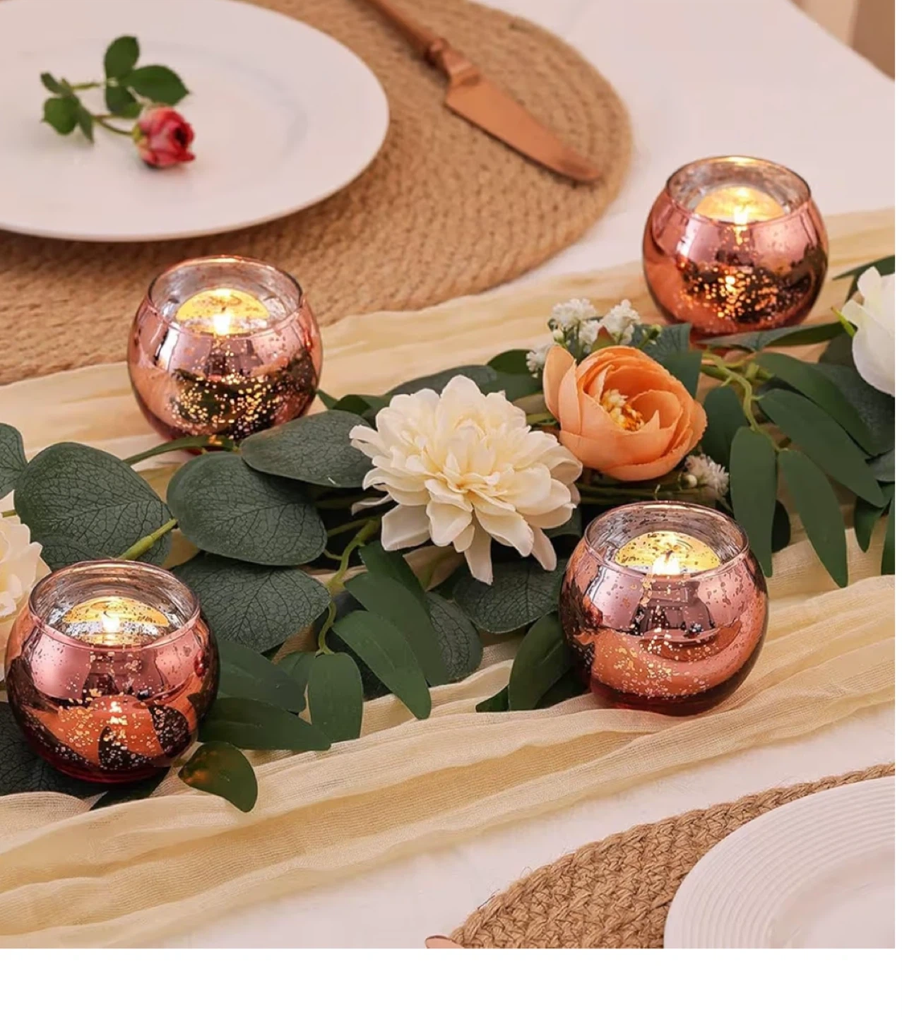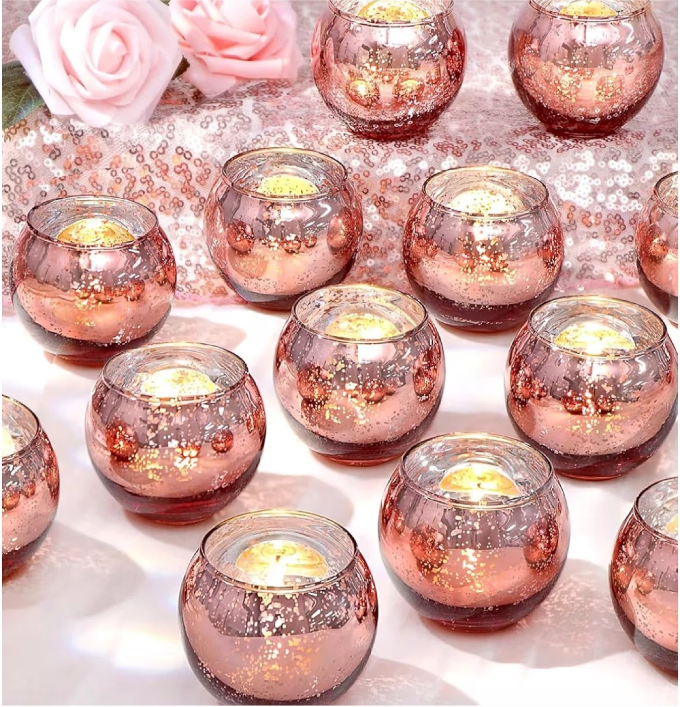 Rose Gold Mercury Glass Votive Holders - Set of 12