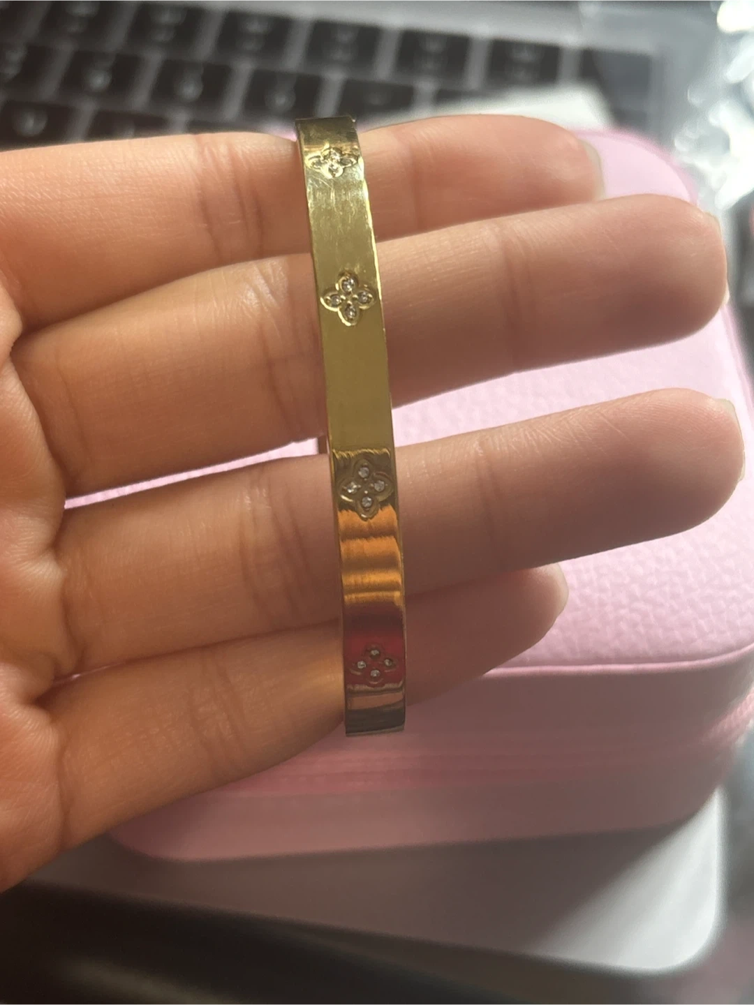 18k gold plated waterproof Gold-tone Bangle with Rhinestones