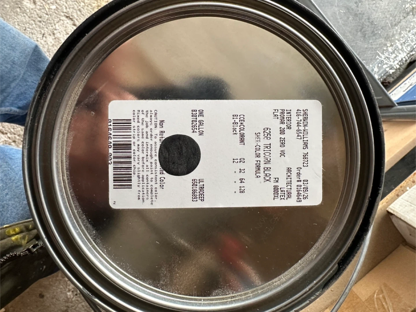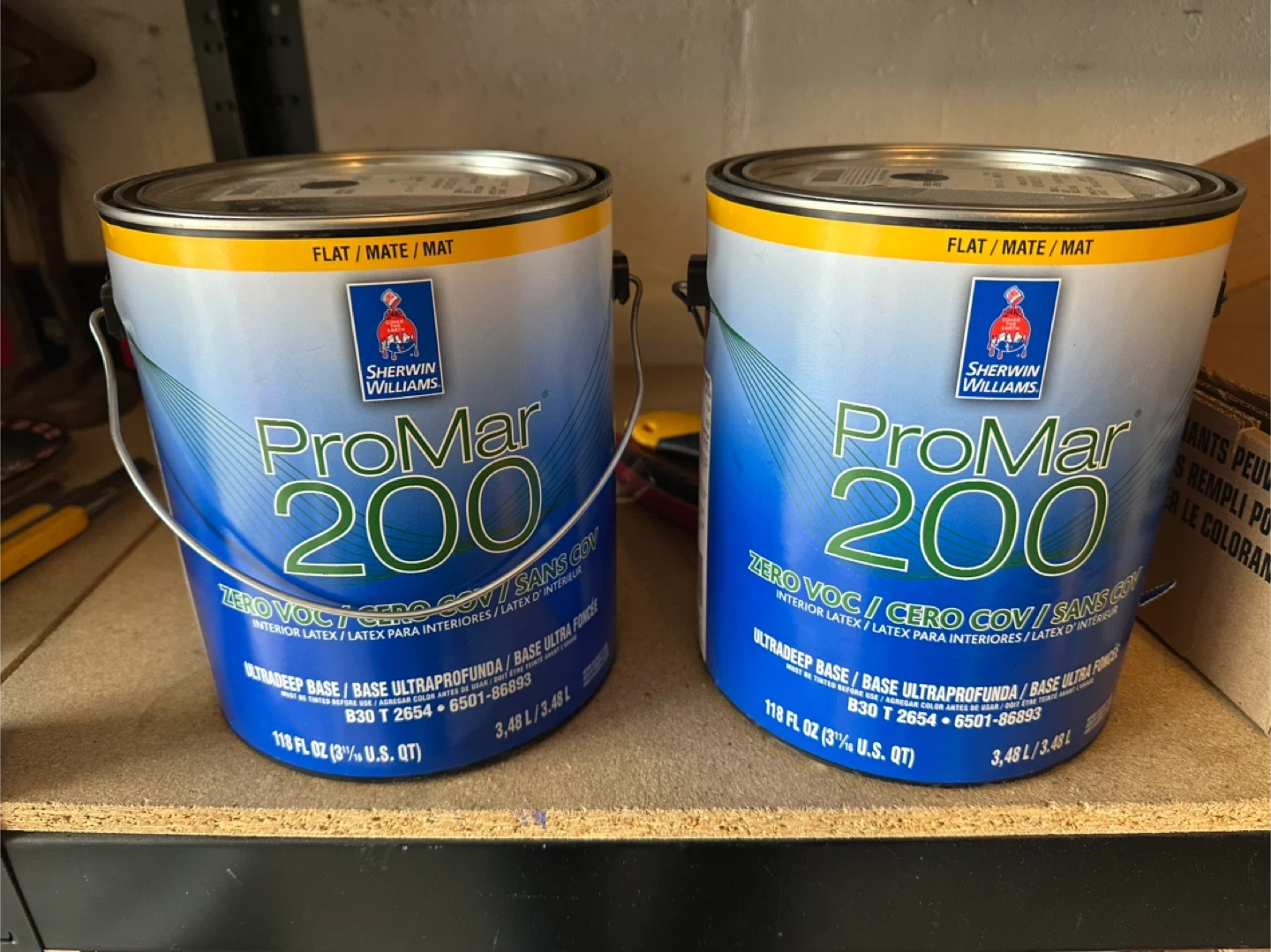 2 gallon of Sherwin-Williams ProMar 200 Zero VOC interior latex paint in the colour "TRICORN BLACK". It's a flat finish, architectural grade paint. Includes original can.