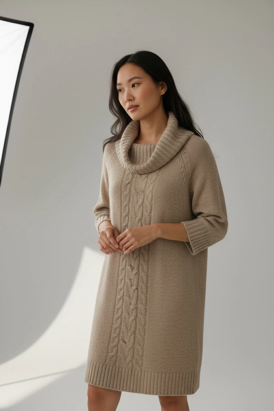 Cable Knit Cowl Neck Sweater Dress