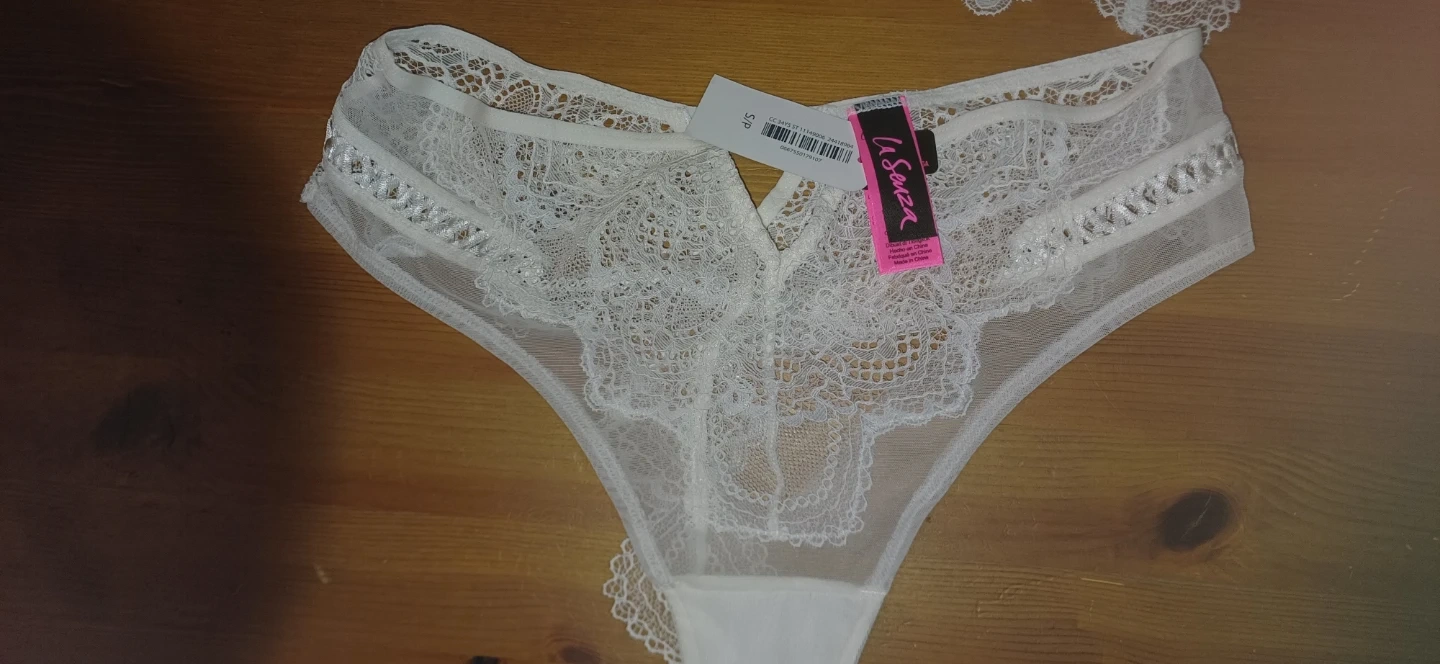 La Senza White Lace Plunge Bra and Panty Set - 32D