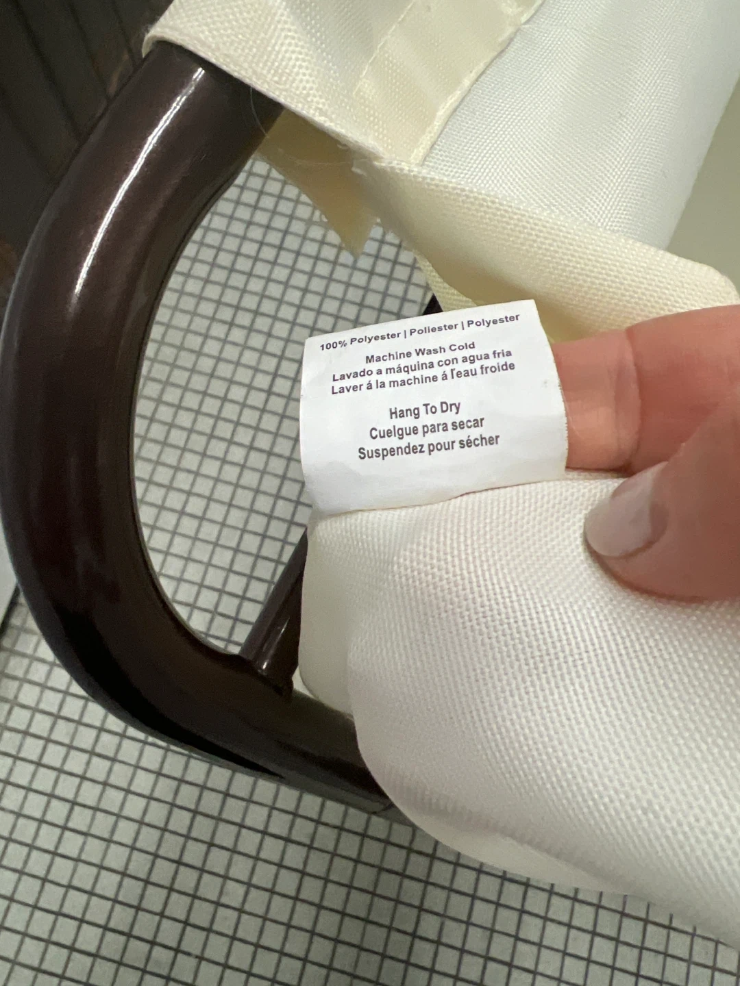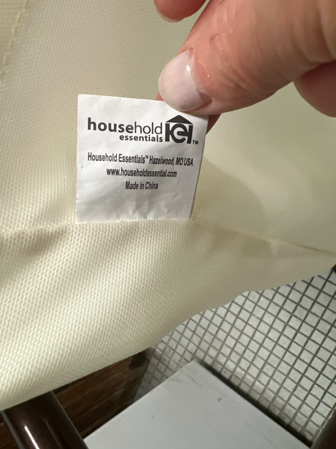 This is a Household Essentials collapsible laundry hamper. It's made of 100% polyester fabric with a metal frame. Machine wash cold and hang to dry.