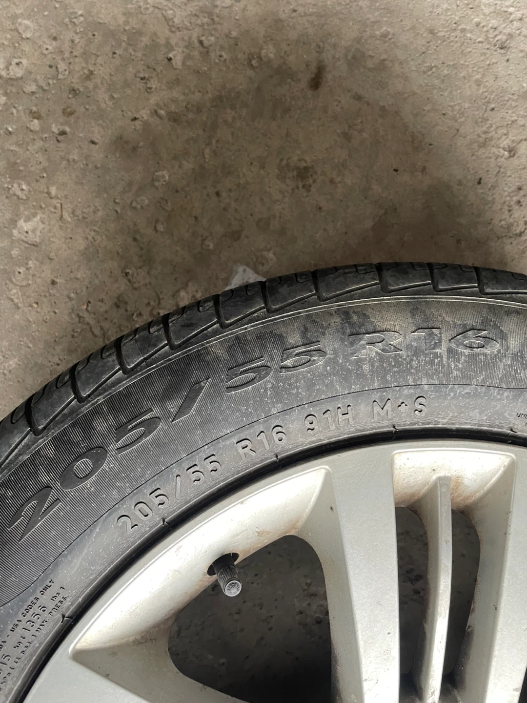 Four winter tires and rims. Tire size is 205/55 R16 91H M+S. These are all-season tires good for one more season. Great condition, just needs a clean.