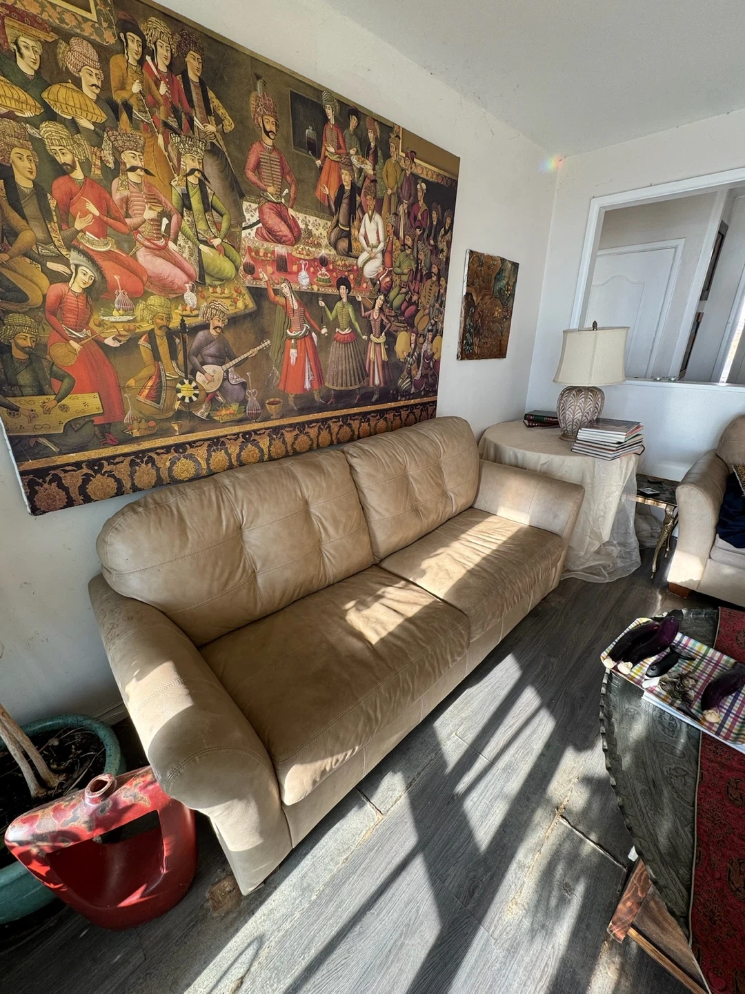 Buy & SellTan Leather SofaTan Leather Sofa$130Comfortable three-seater sofa. It's upholstered in tan leather with a tufted backrest. Measures approximately 80 inches wide.ConditionGoodWHERE TO MEETCentral lonsdaleView MapSELLERverifiedAlyssaCentral Lonsdale600 reviews0 chats·0 favorites·11 viewsSEND CHAT TO SELLERHi Alyssa! I’m interested in your listing.Hi Alyssa! I’m interested in your listing.Get the Karrot app to chatSign In to chat