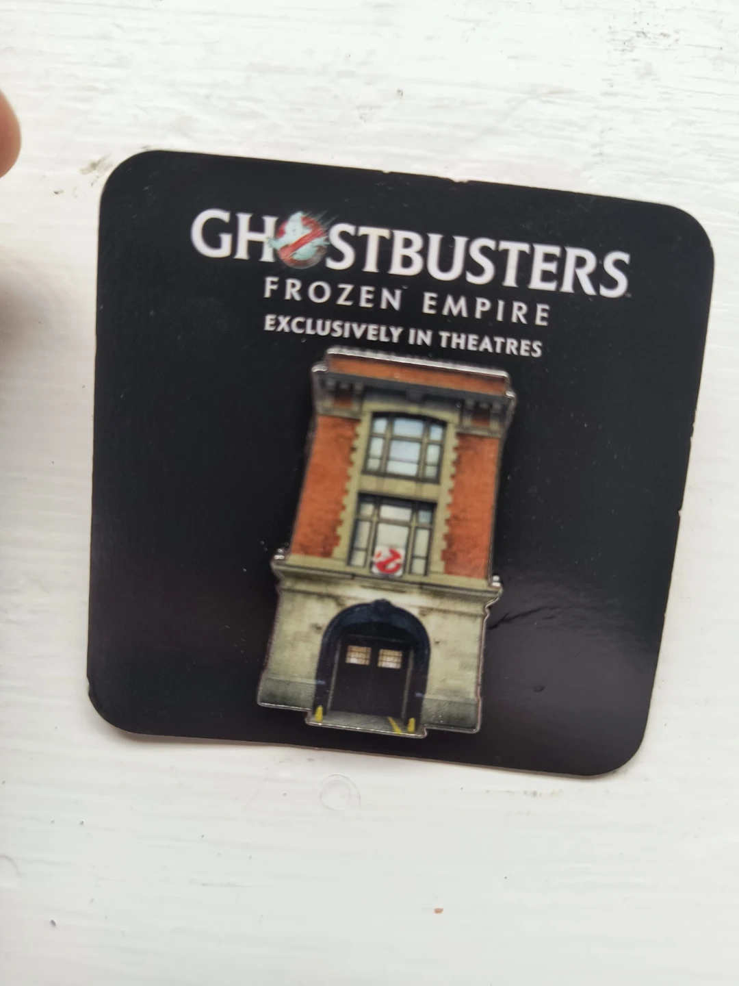 This is a Ghostbusters Frozen Empire enamel pin featuring the iconic firehouse. It's designed for ages 3 and up. A great collectible for fans of the Ghostbusters franchise!