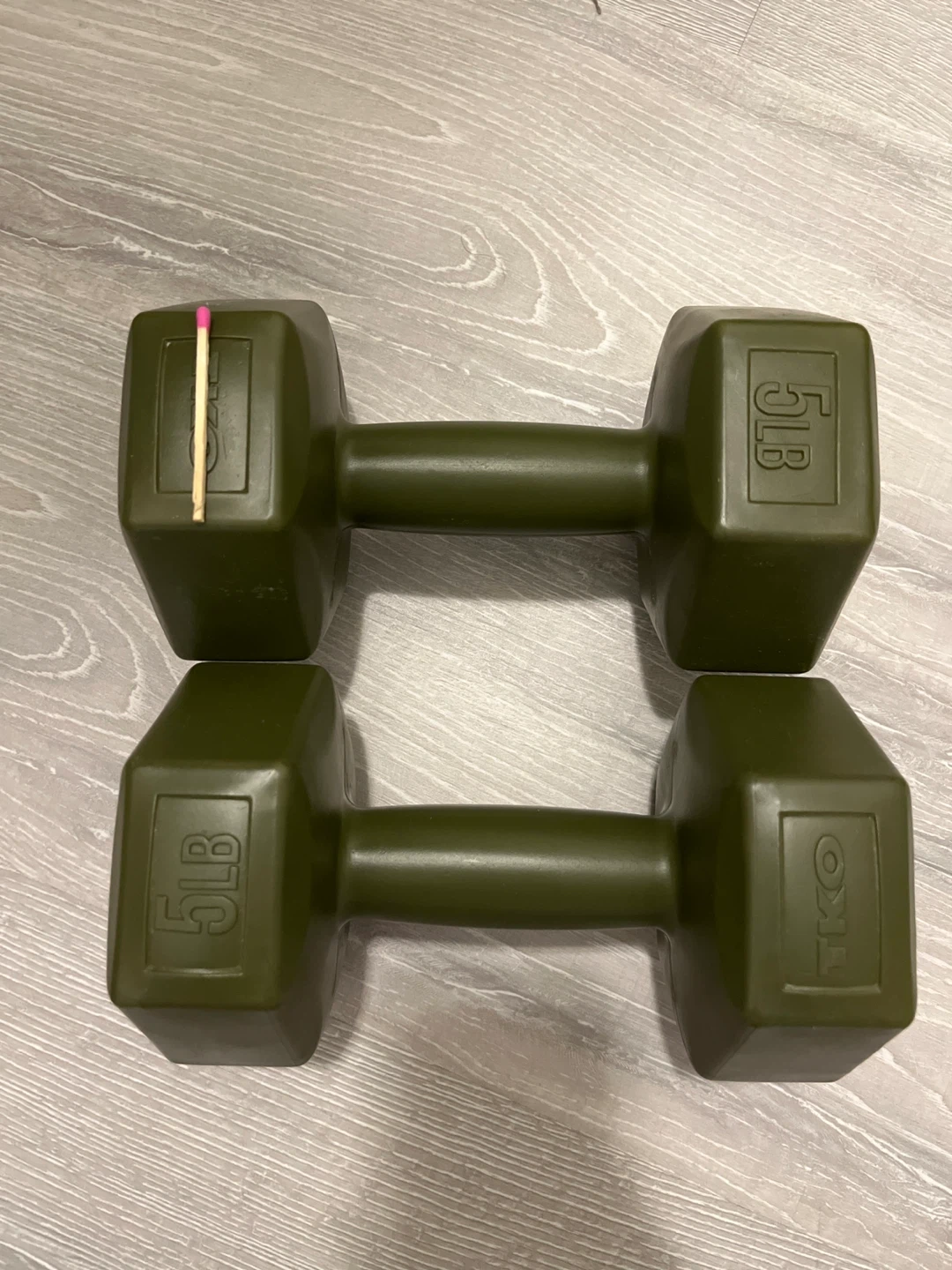 Buy & SellTKO 5LB Dumbbell - Olive GreenTKO 5LB Dumbbell - Olive Green$2Selling a pair of TKO 5LB dumbbells in olive green. They're in great shape and ready for your home gym!WHERE TO MEETCheck LocationView MapSELLERMykolaKing East10112 reviews3 chats·1 favorites·52 viewsSEND CHAT TO SELLERHi Mykola! I’m interested in your listing.Hi Mykola! I’m interested in your listing.Get the Karrot app to chatSign In to chat