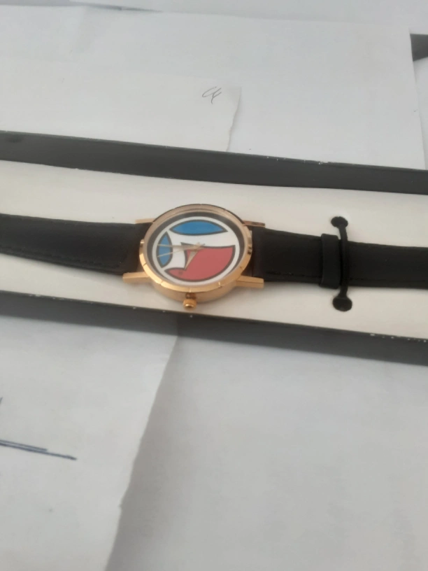 very Rare Vintage Lionel trains wrist watch made by Sweda, with a black leather band. The watch face is a circular design with a red, blue, and white colour scheme. hard to find . $65.00 call 403 2411387
