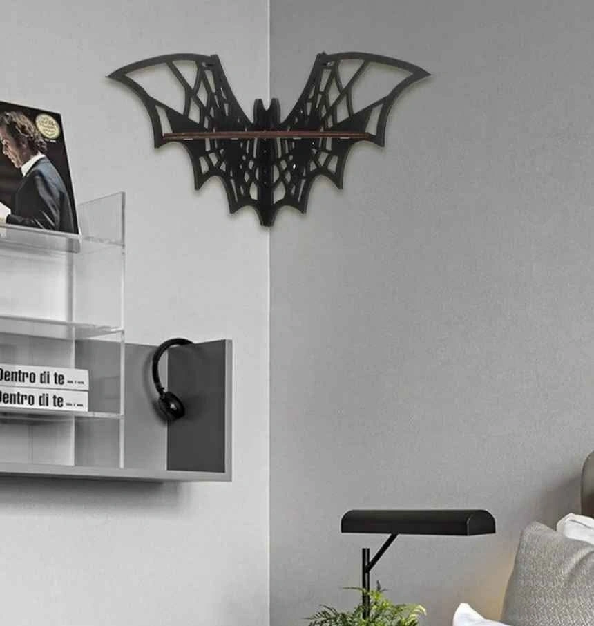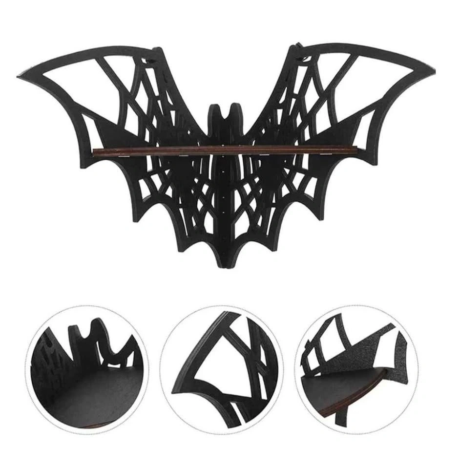 This new floating corner shelf with a bat-shaped design is perfect for any home. No professional tools are required, offering a unique way to display your favorite items in any corner. Made of wood. Product size is about 20x4.5x11.5cm (7.87x1.77x4.53 inches). Located in Crowsnest Pass.