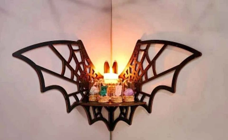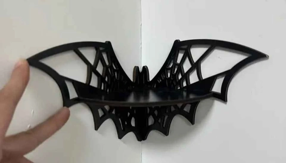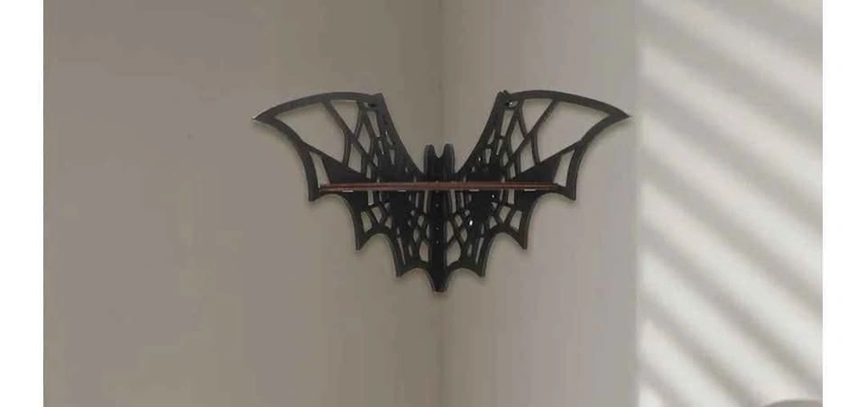 This new floating corner shelf with a bat-shaped design is perfect for any home. No professional tools are required, offering a unique way to display your favorite items in any corner. Made of wood. Product size is about 20x4.5x11.5cm (7.87x1.77x4.53 inches). Located in Crowsnest Pass.