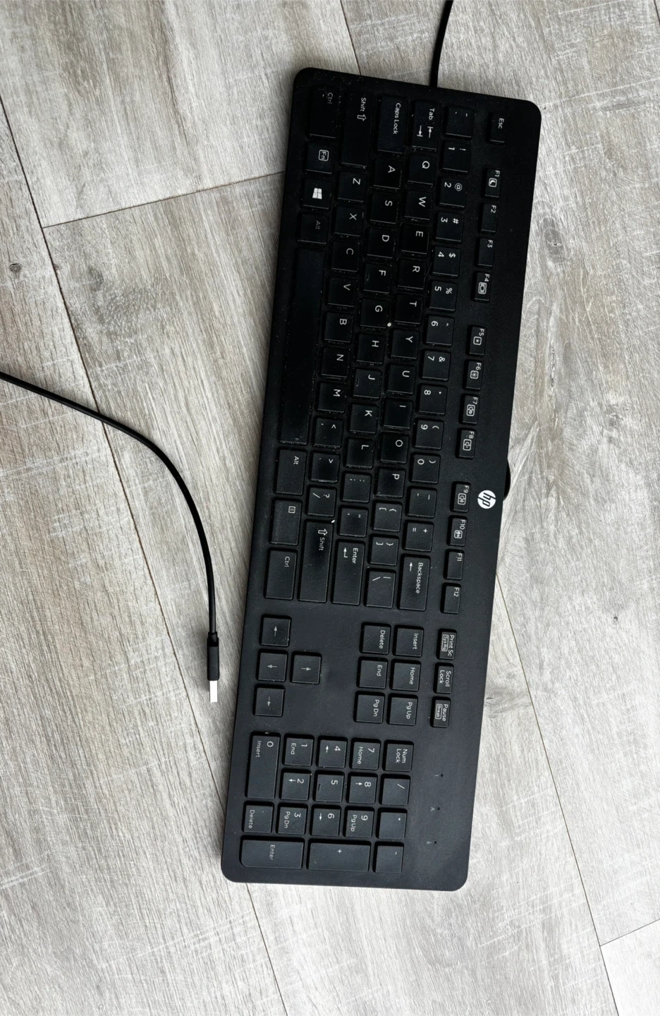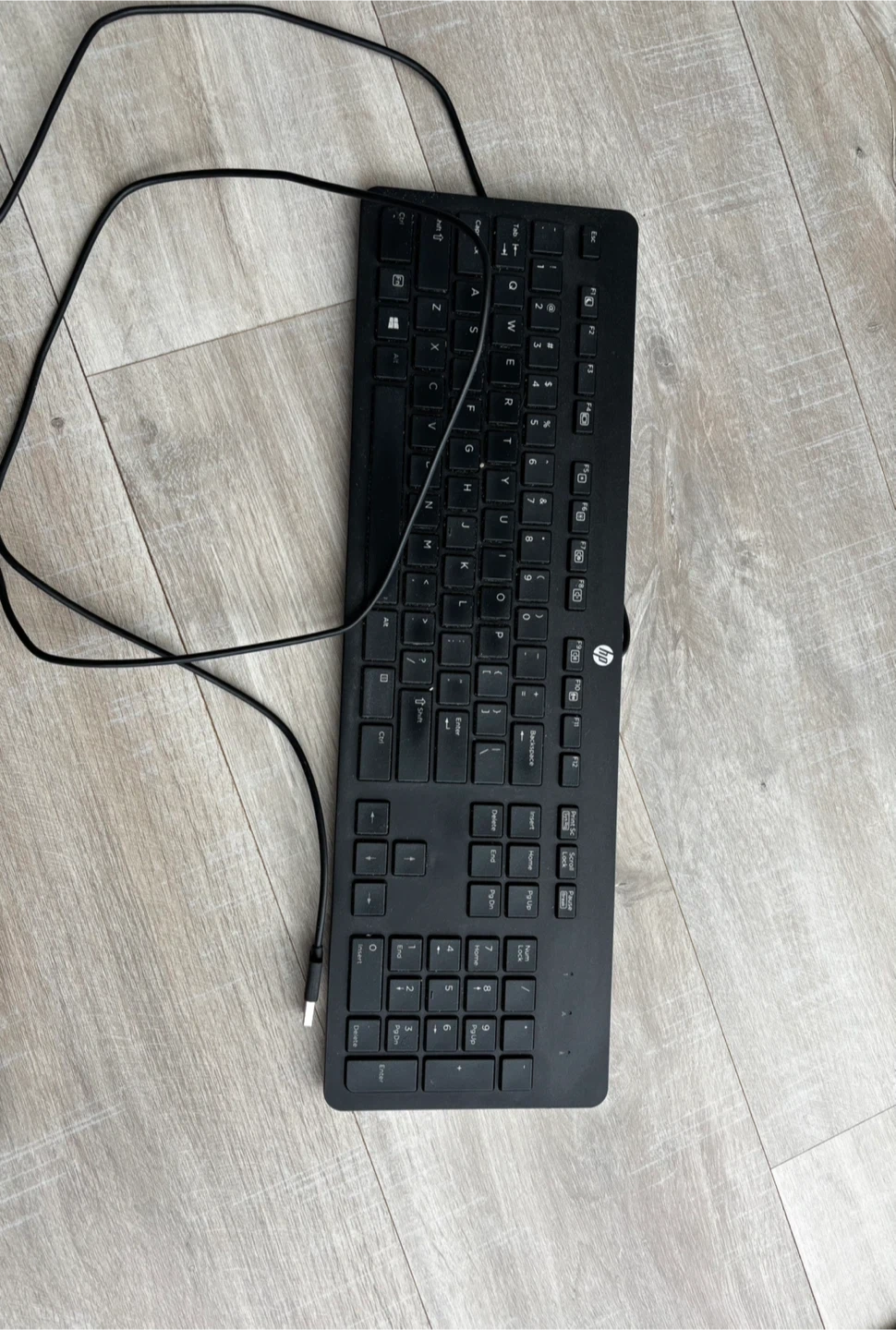 Works perfect - HP wired keyboard. It features a full numeric keypad and a QWERTY layout. Includes the connecting USB cable.