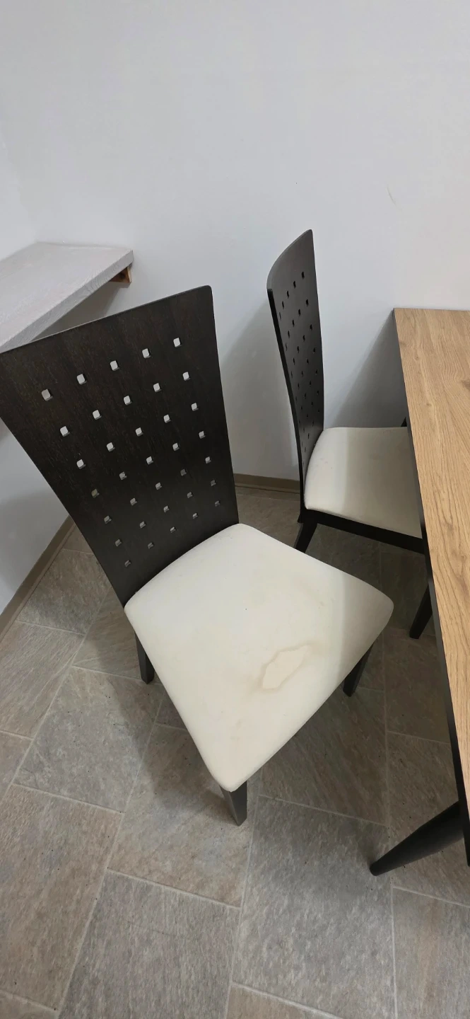 Comes with 4 chairs. All chairs are sturdy and in perfect condition but their seat cushions have some stains, but they can be removed with cleaning or washing.