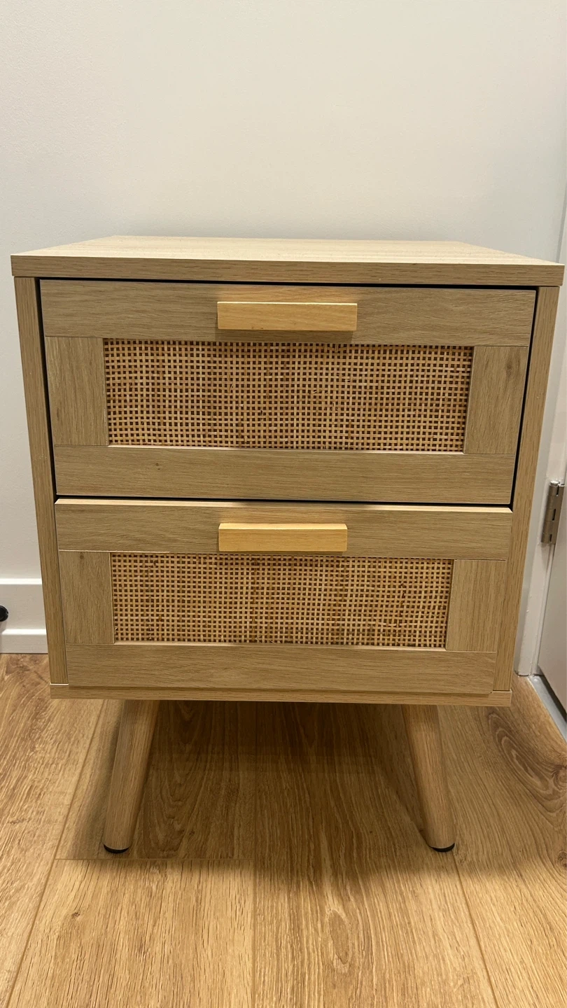Two-drawer nightstand with rattan fronts