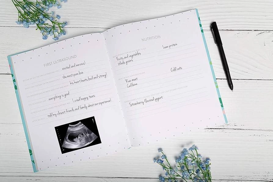Adorable pregnancy journal from Kate & Milo. Features a pretty floral design on the cover with a 3.5 x 3.5 inch photo insert for your ultrasound pic. Lots of pages inside to record all the special moments and memories from your pregnancy journey. Pick up only.