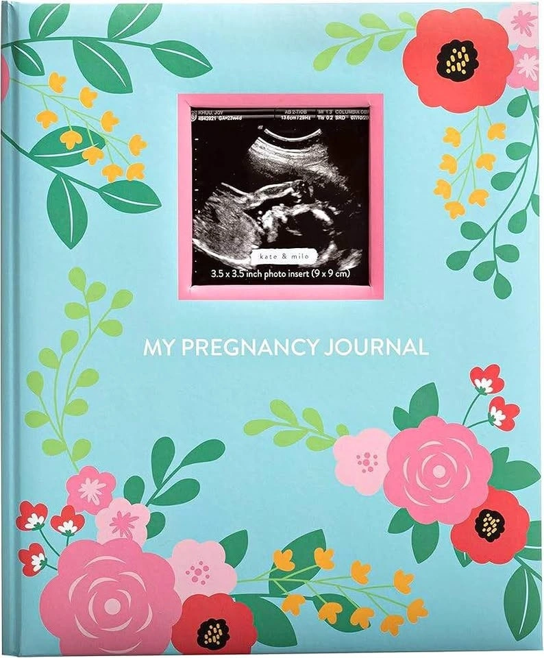 Adorable pregnancy journal from Kate & Milo. Features a pretty floral design on the cover with a 3.5 x 3.5 inch photo insert for your ultrasound pic. Lots of pages inside to record all the special moments and memories from your pregnancy journey. Pick up only.
