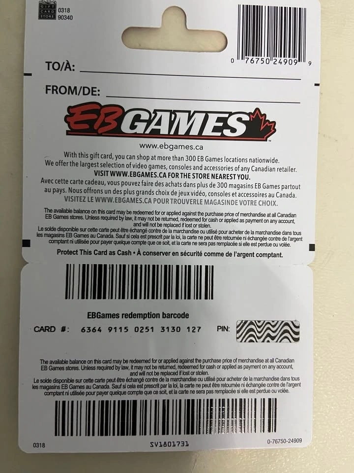 Buy & SellEBGame (Gamestop) gift card (balance $25)EBGame (Gamestop) gift card (balance $25)$22Never used with balance of $25. Contact me only if you are serious buyer. Pick up near Bayview Ave and Bloomington RoadWHERE TO MEETCheck LocationView MapSELLERClarenceAurora SE100 reviews1 chats·1 favorites·33 viewsSEND CHAT TO SELLERHi Clarence! I’m interested in your listing.Hi Clarence! I’m interested in your listing.Get the Karrot app to chatSign In to chat