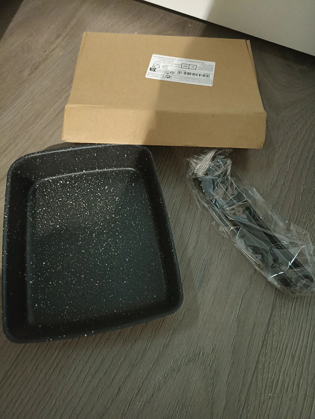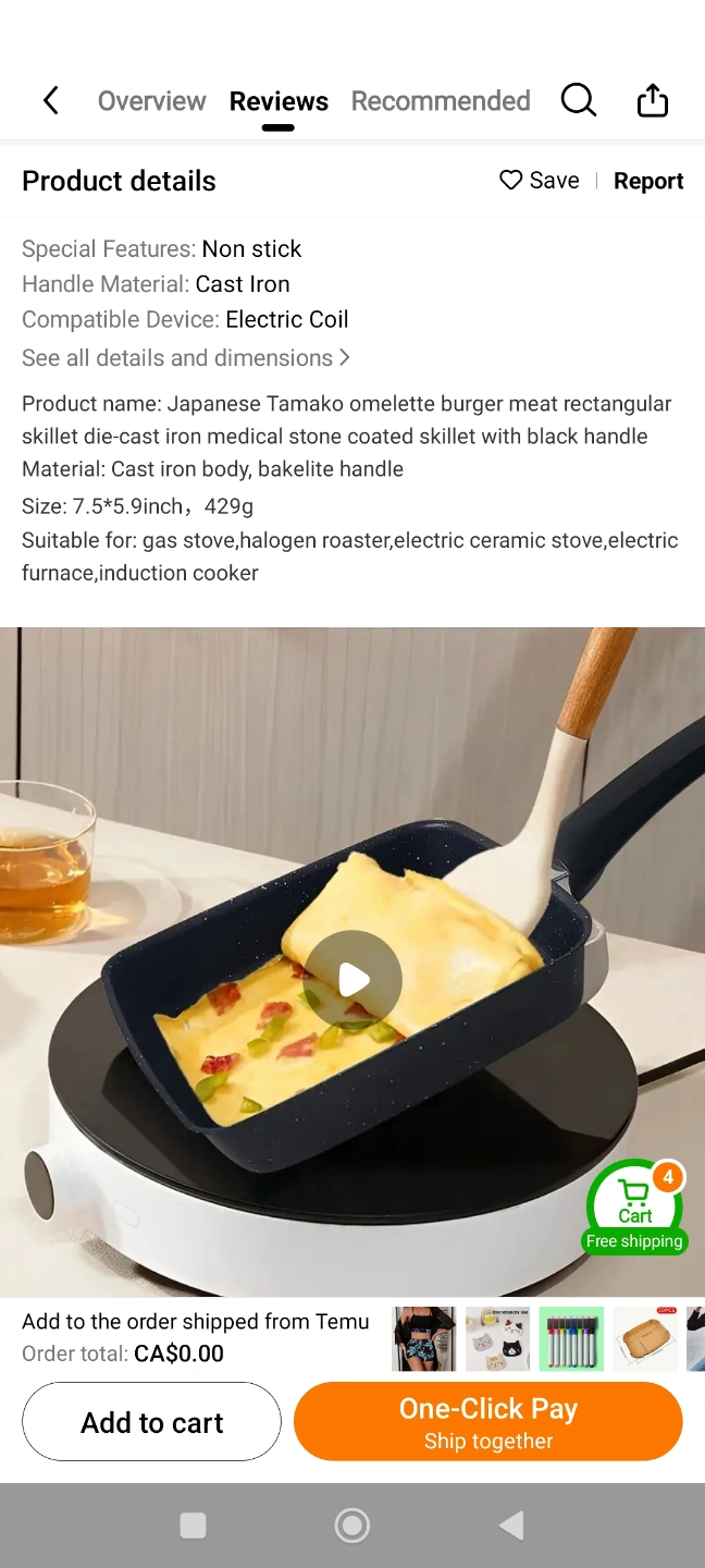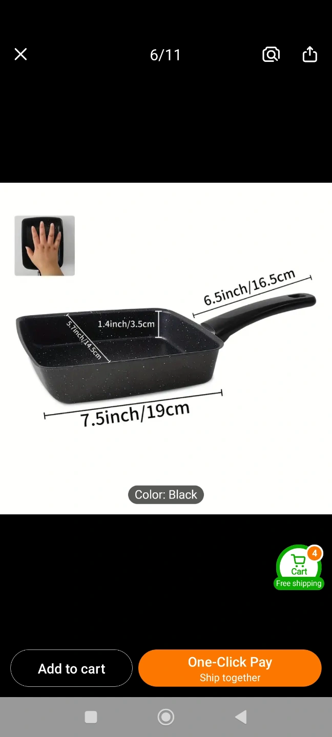 Non-stick rectangular cast iron skillet. Features medical stone coating, bakelite handle. 7.5x5.9 inch. Suitable for gas, halogen, electric ceramic stove, electric furnace, induction cooker.