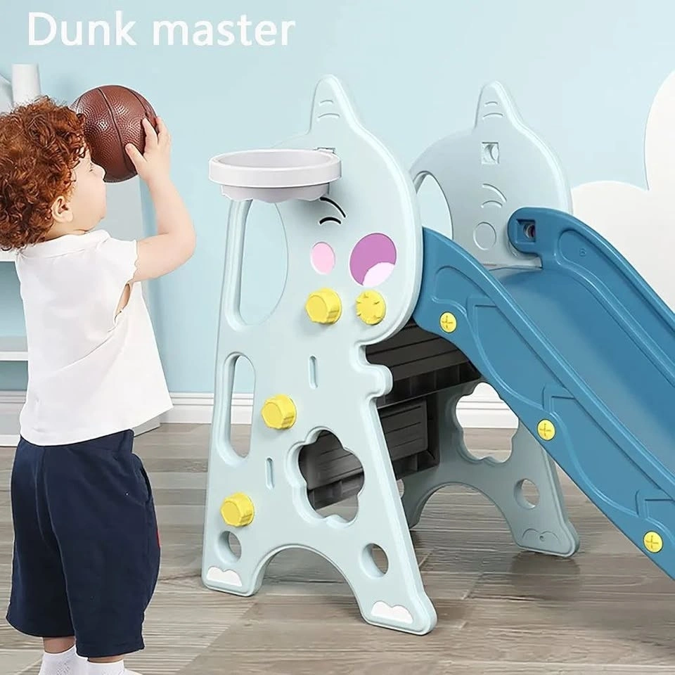 NEW 3-in-1 Kids Slide with Basketball Hoop - Folding Indoor/Outd