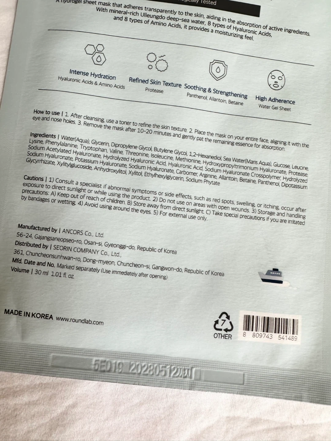 - Round Lab 1025 Dokdo Hydrating Water Gel Mask, 30 ml, EXP 12.05.2028