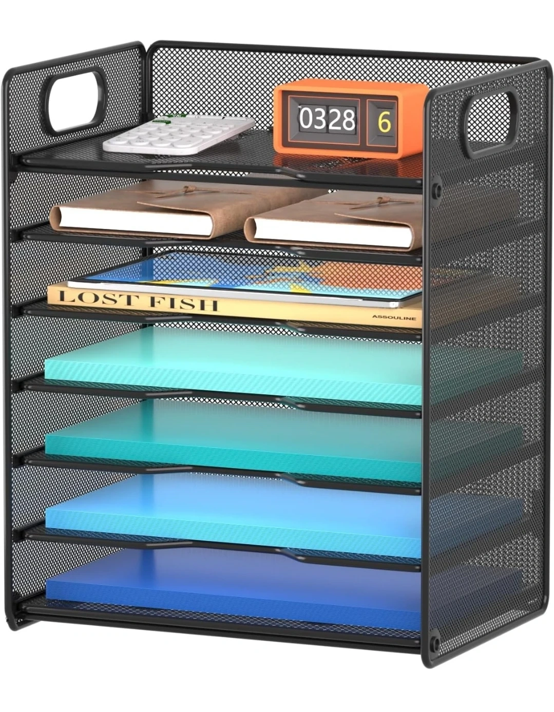 Black Mesh Desk Organizer with 7 Tiers
