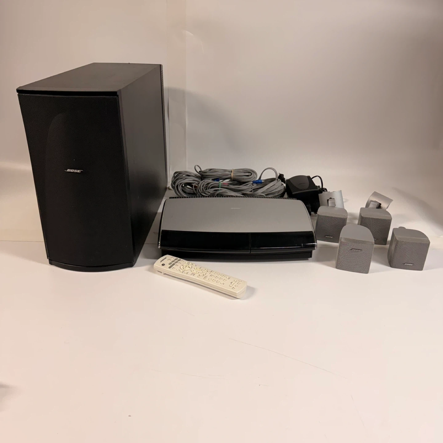 Complete Bose Lifestyle home theater system in good working condition. Everything has been tested and works properly. This is a full surround sound setup with strong bass and clear sound.