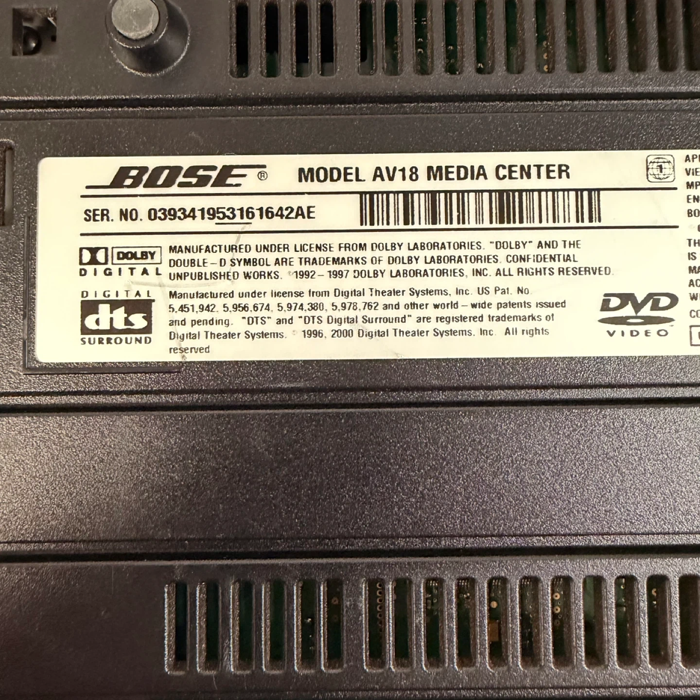 • Bose AV18 Media Center (DVD / surround processor)