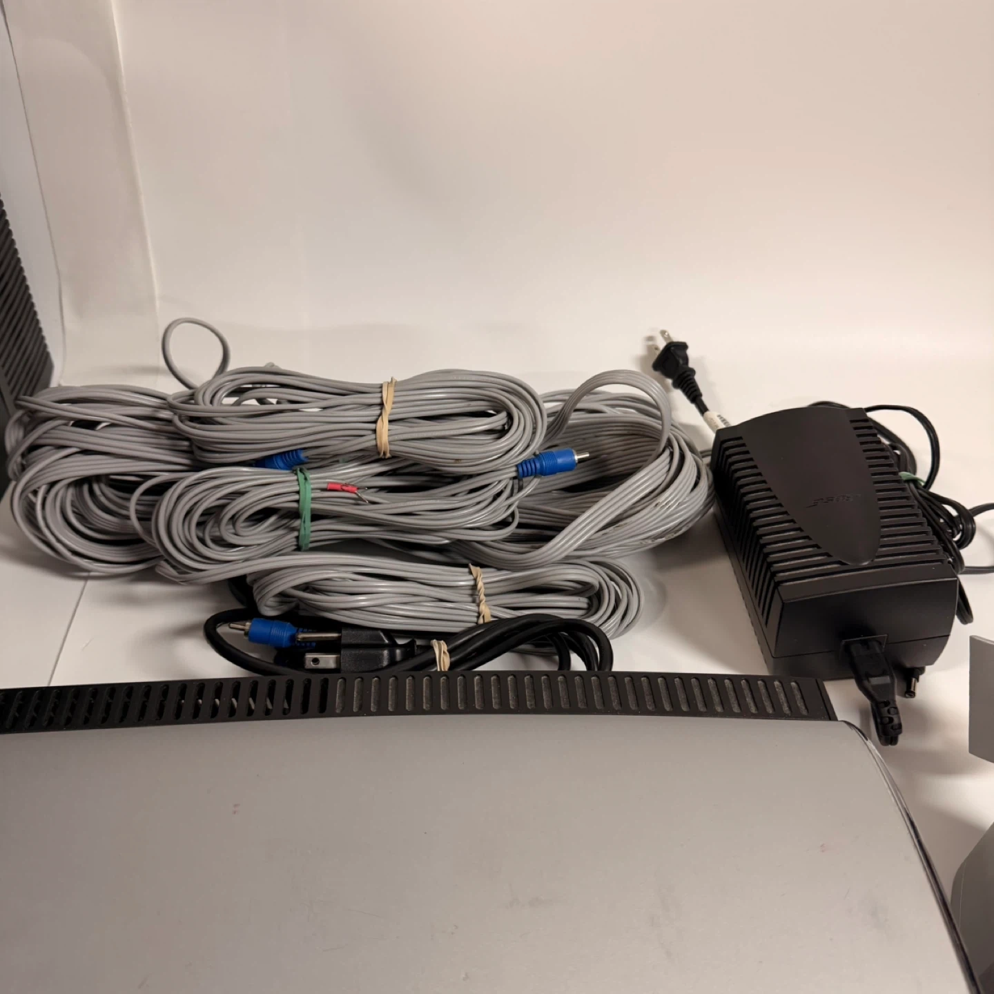 • Power adapter & all speaker cables