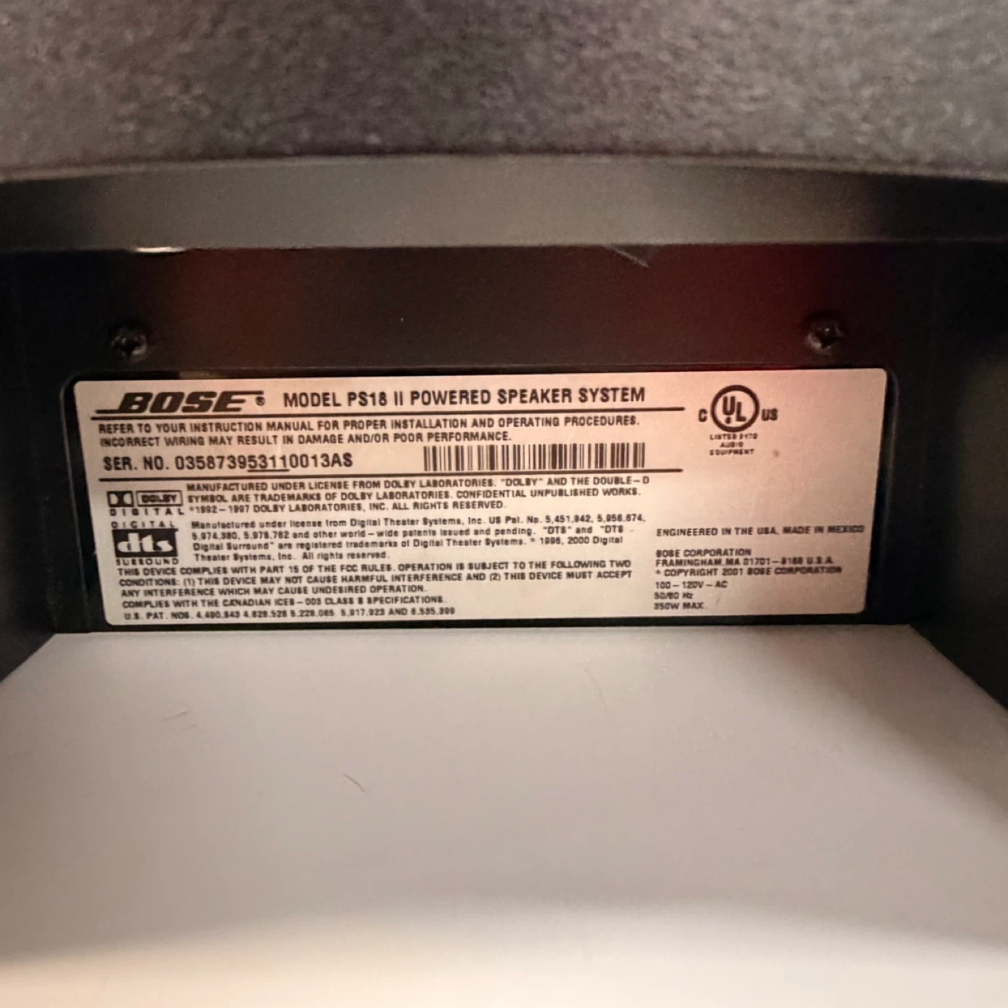 • Bose PS18 II powered subwoofer