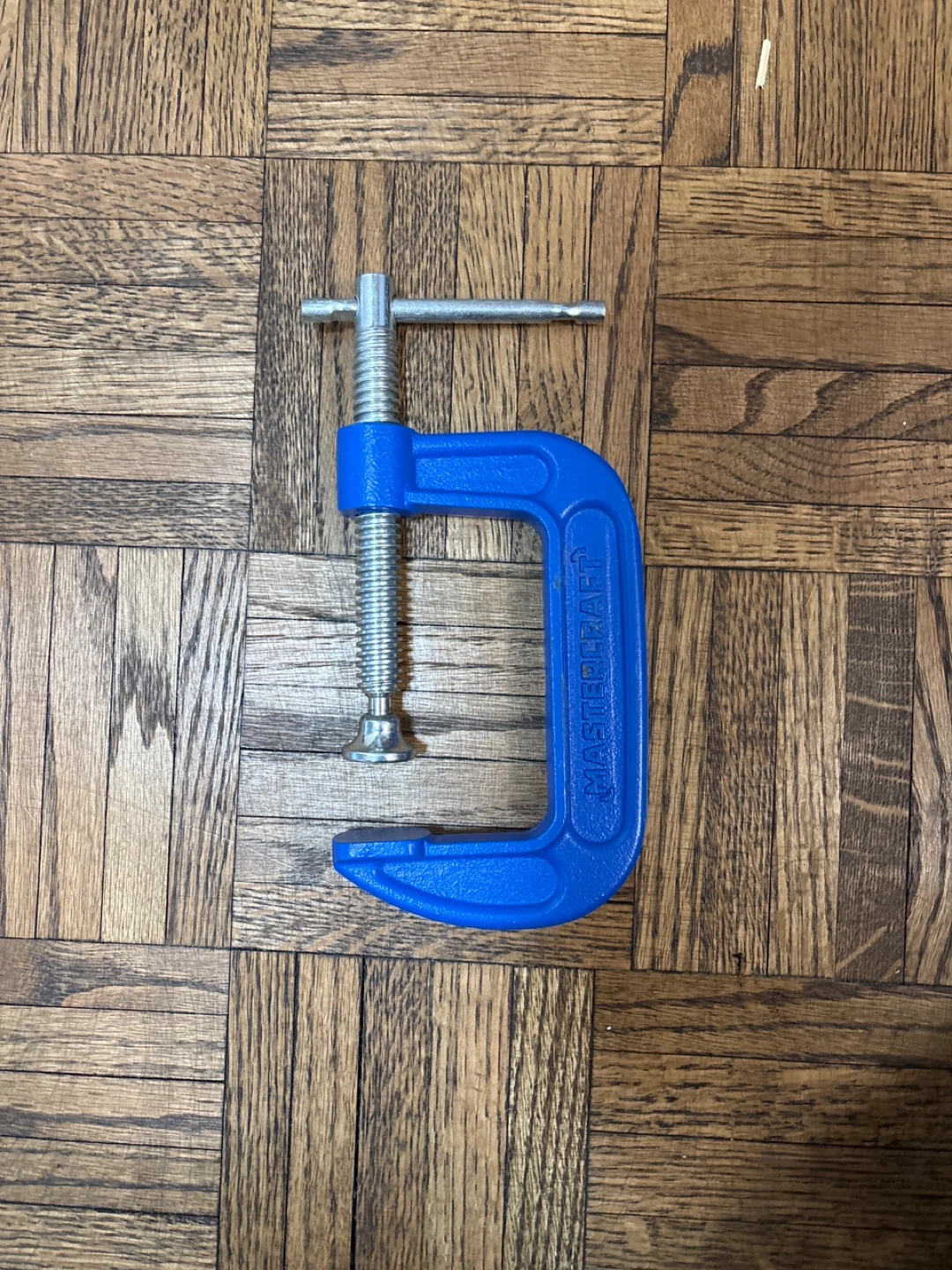 This set includes 11 wood chisels with wooden handles. It also comes with a hacksaw with one blade, a set of 5 files with orange handles, and a Mastercraft C-clamp. Bin included