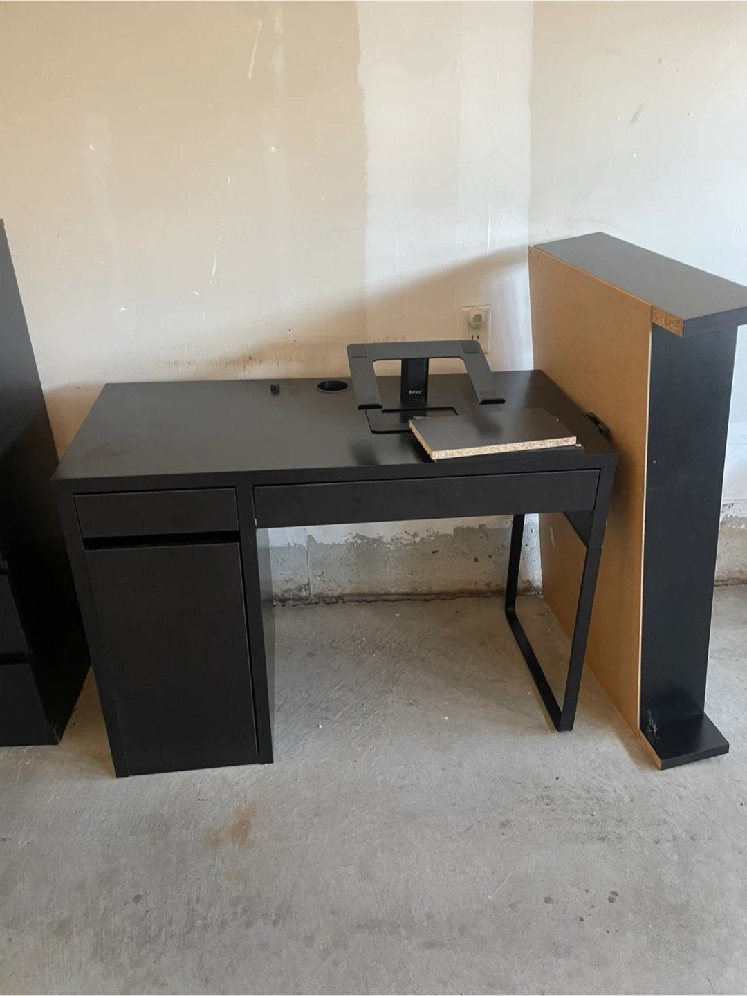Black IKEA Desk with Drawer and Laptop Stand