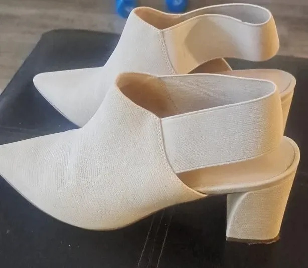 These women's slingback heels feature a pointed toe and a comfortable block heel. Elasticized slingback strap for easy on and off.