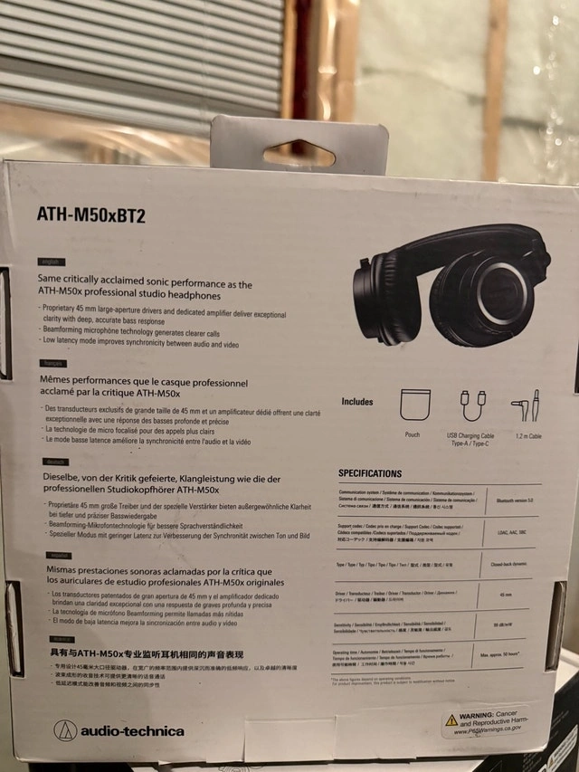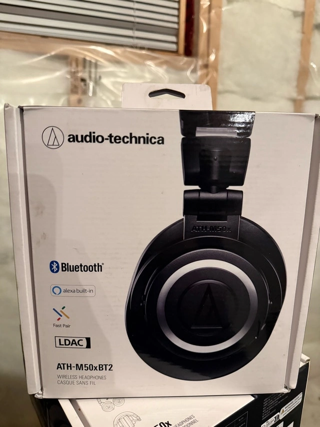 These Audio-Technica ATH-M50xBT2 wireless headphones deliver acclaimed sonic performance and exceptional clarity. In nearly new condition, these headphones feature Bluetooth connectivity, a 50-hour battery life, and a comfortable, collapsible design. Perfect for professional studio use or enjoying your favourite music on the go. Key Features: 45 mm Large-Aperture Drivers, Bluetooth 5.0 with multipoint pairing, 50-Hour Battery Life, App-Based Equalizer, Collapsible Design. Two in stock. Cash accepted. Cashless payment accepted.
