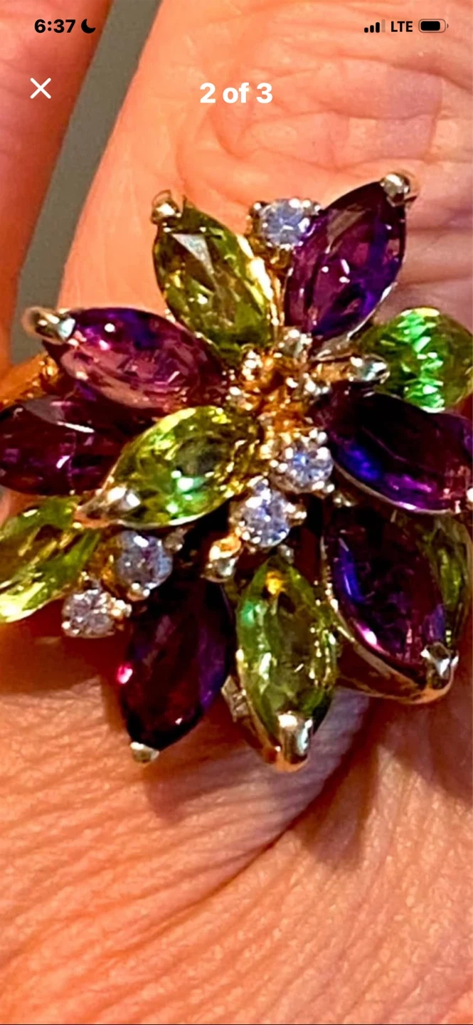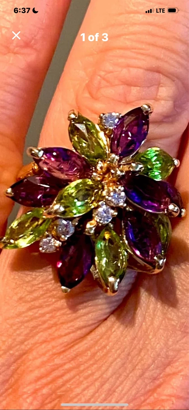💎Estate Amethyst Peridot Diamond 14k Gold Cluster Ring!