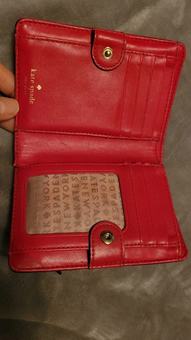 This Kate Spade wallet is a stylish and compact accessory, perfect for everyday use. Being sold in used condition. Brand: Kate Spade. Colour: Red. Material: Leather. Style: Bifold. If the ad is up, it's available!