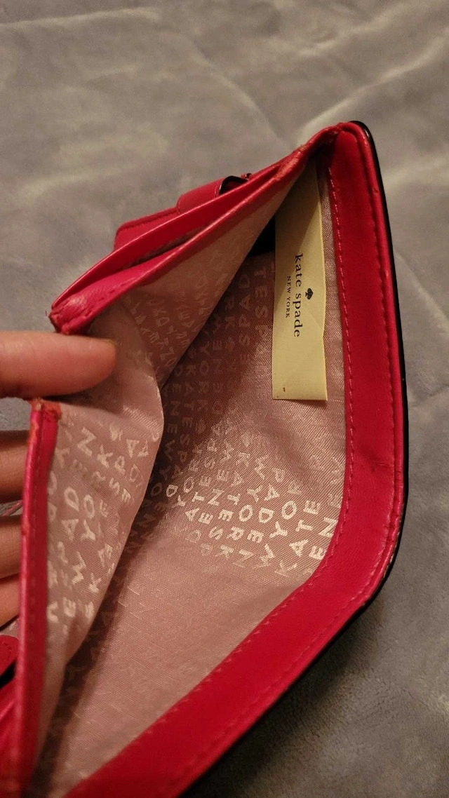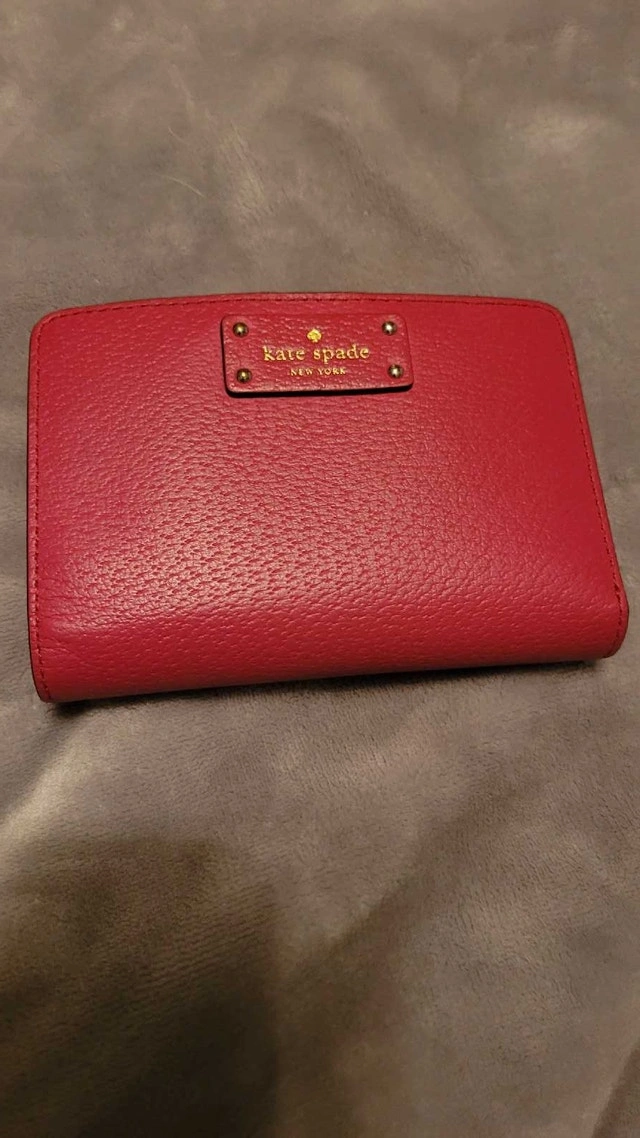 This Kate Spade wallet is a stylish and compact accessory, perfect for everyday use. Being sold in used condition. Brand: Kate Spade. Colour: Red. Material: Leather. Style: Bifold. If the ad is up, it's available!
