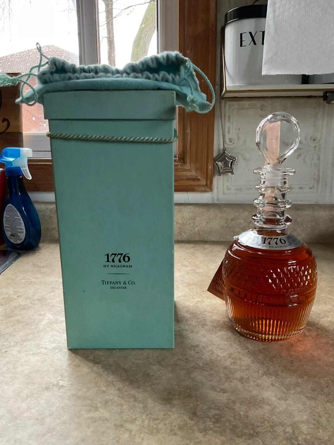 This is a Tiffany & Co. 1776 by Seagram unopened decanter.