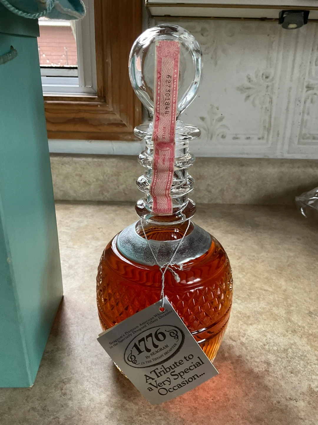 This is a Tiffany & Co. 1776 by Seagram unopened decanter.