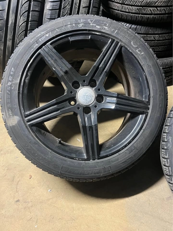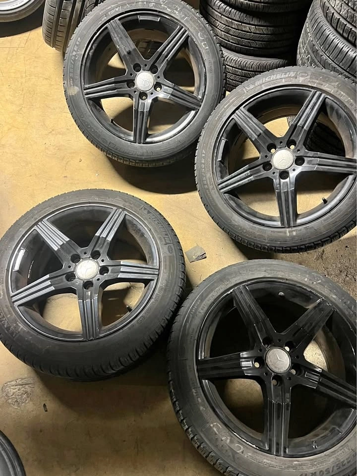 Used set of Michelin winter tires, size 225/50/17. Tires have 3-4mm tread remaining. Wheel specs: 17x8 ET45, 5x112 bolt pattern, 66.6mm center bore. Cash and carry.
