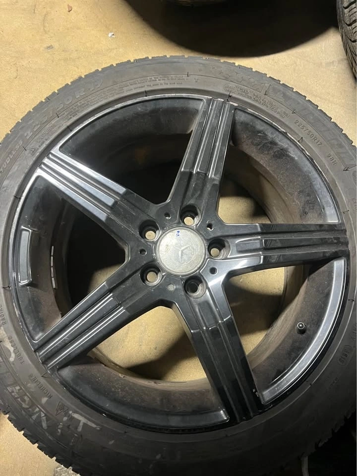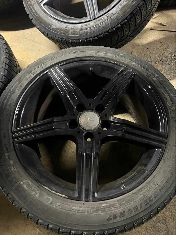 Used set of Michelin winter tires, size 225/50/17. Tires have 3-4mm tread remaining. Wheel specs: 17x8 ET45, 5x112 bolt pattern, 66.6mm center bore. Cash and carry.