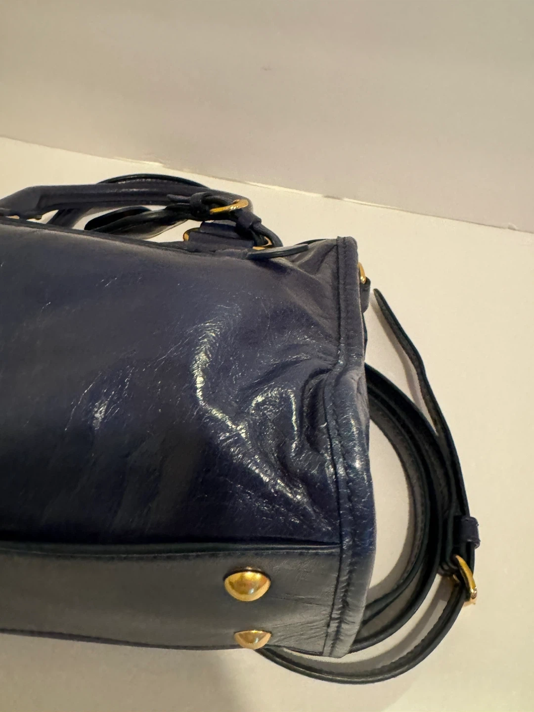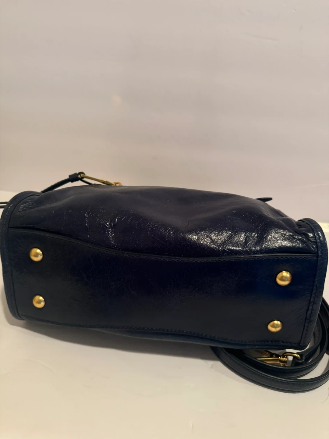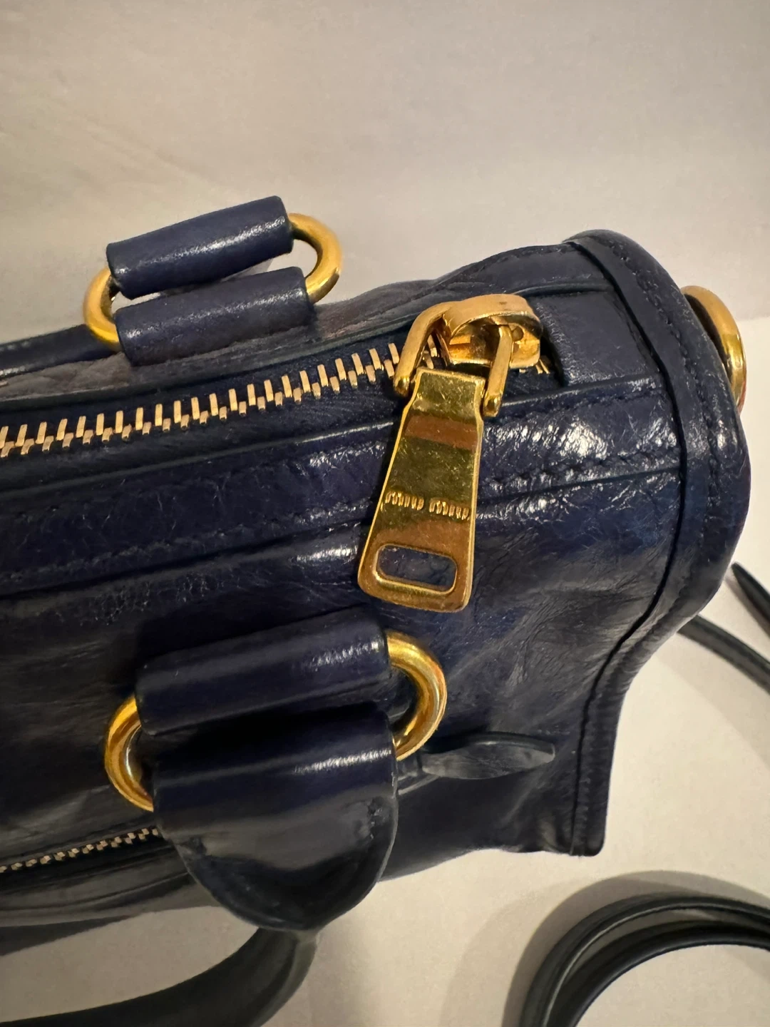 Miu Miu Vitello Shine Leather Top Handle Satchel – Navy Blue