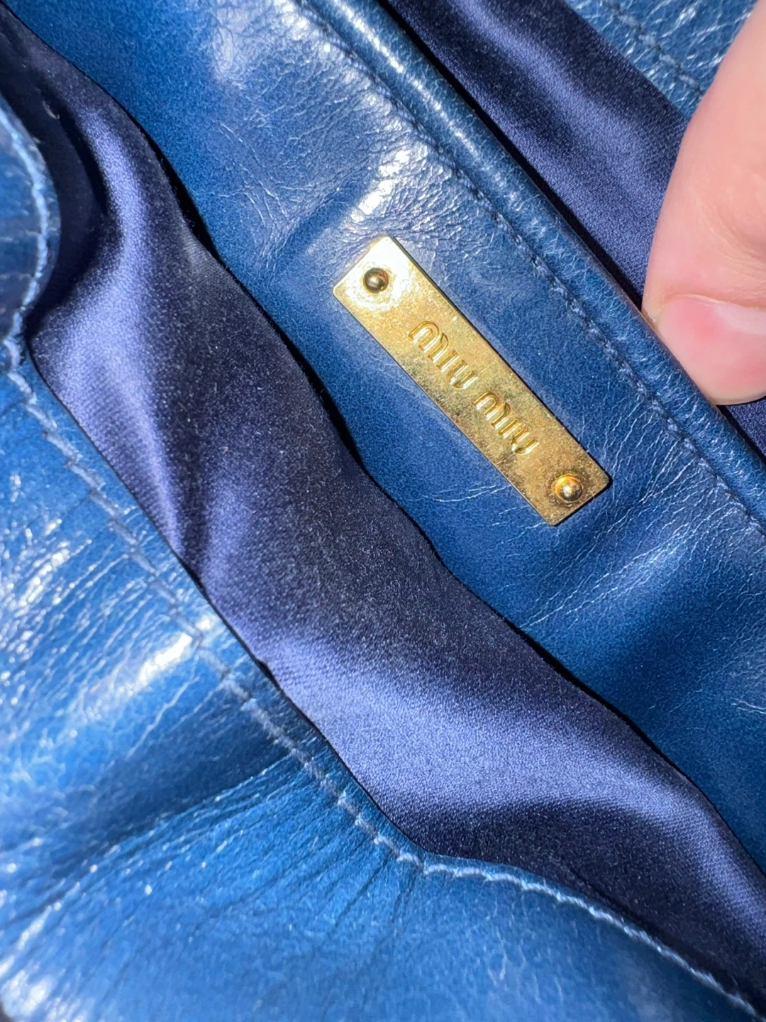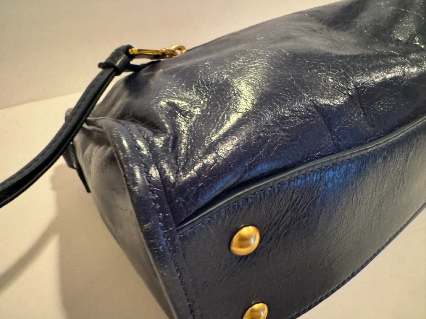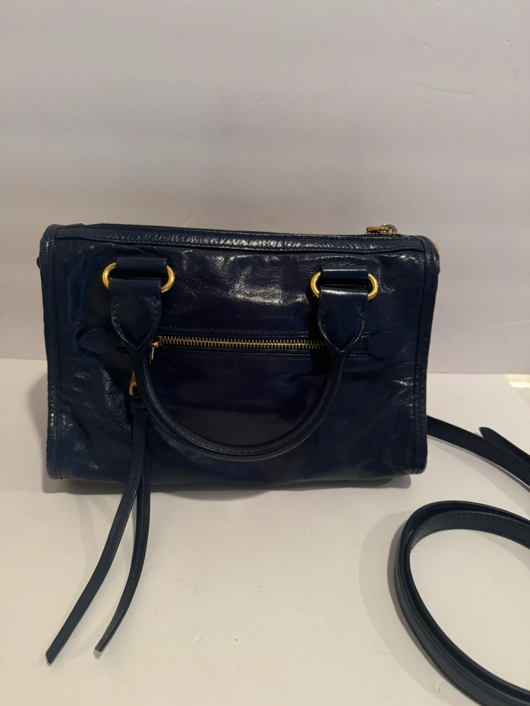 Miu Miu Vitello Shine Leather Top Handle Satchel – Navy Blue