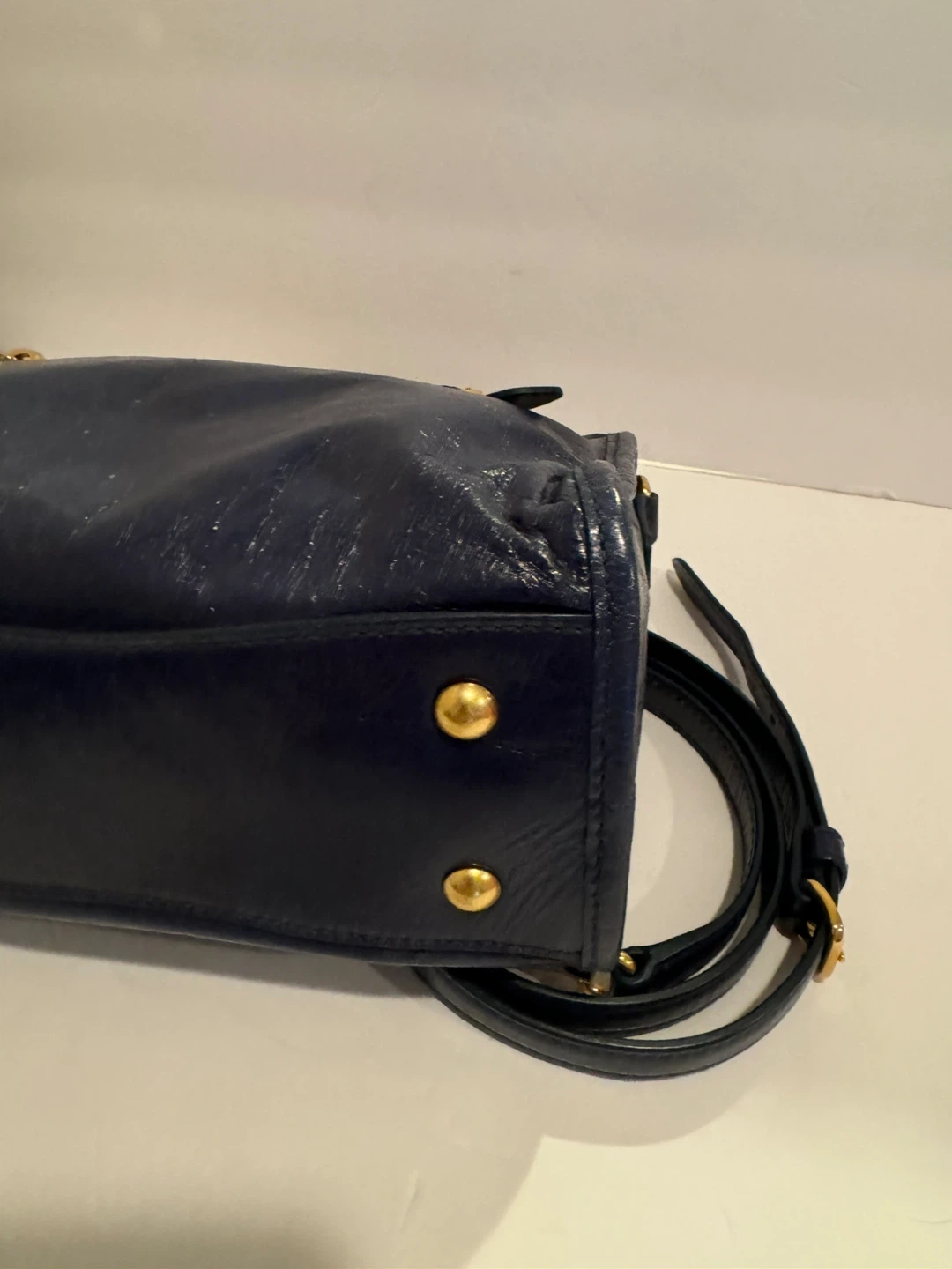 Miu Miu Vitello Shine Leather Top Handle Satchel – Navy Blue