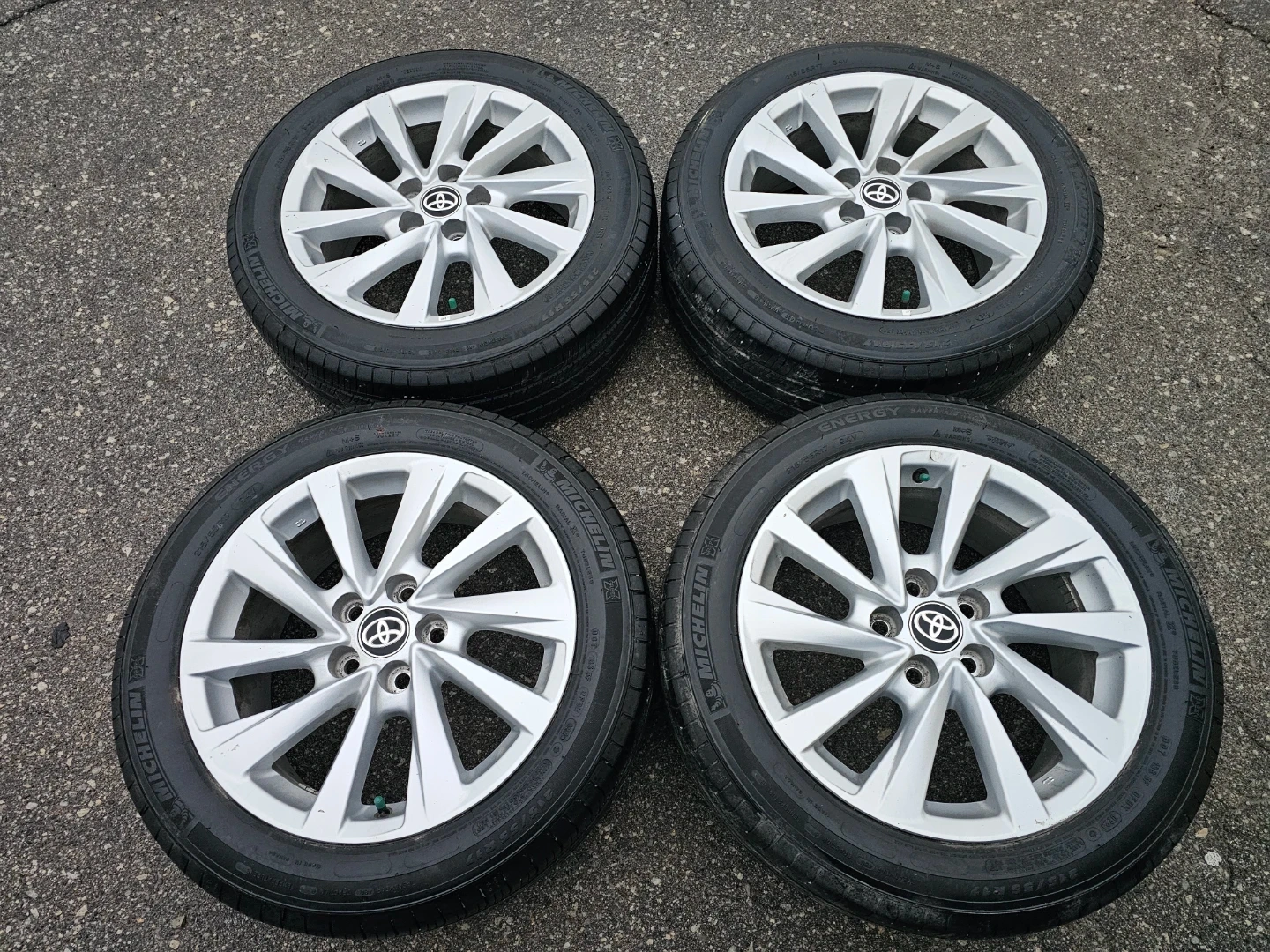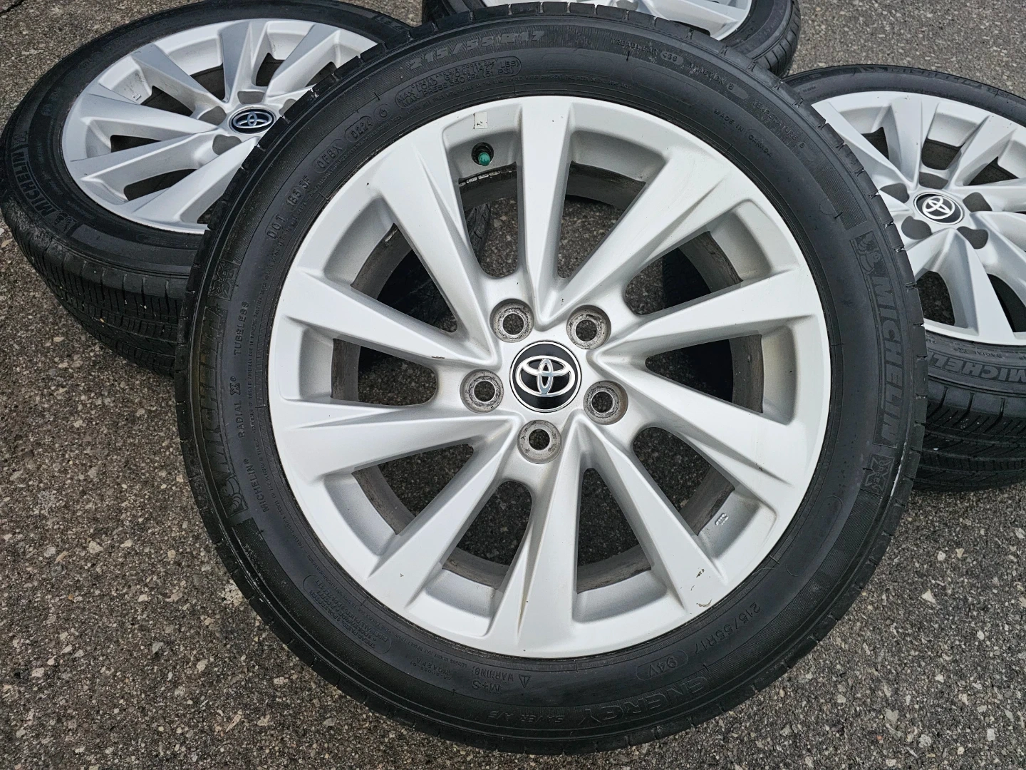 Selling set of 4 original 17" Toyota camry rims with Michellin all season tires on them 215/55 R17. Rims and tires are in good shape, no damage, no bend, no cracks. Lots of thread left on tires, TPMS installed