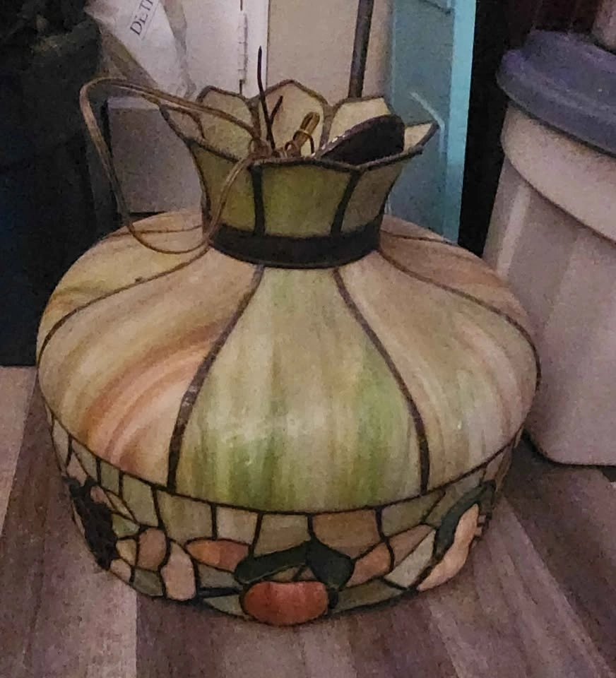 PRICE DROP! Antique Leaded Slag Glass Lamps - Harvest Motif