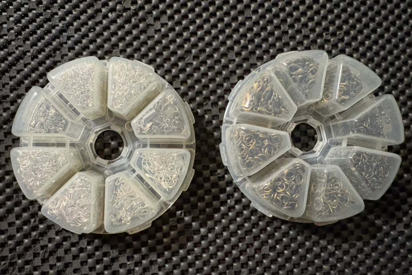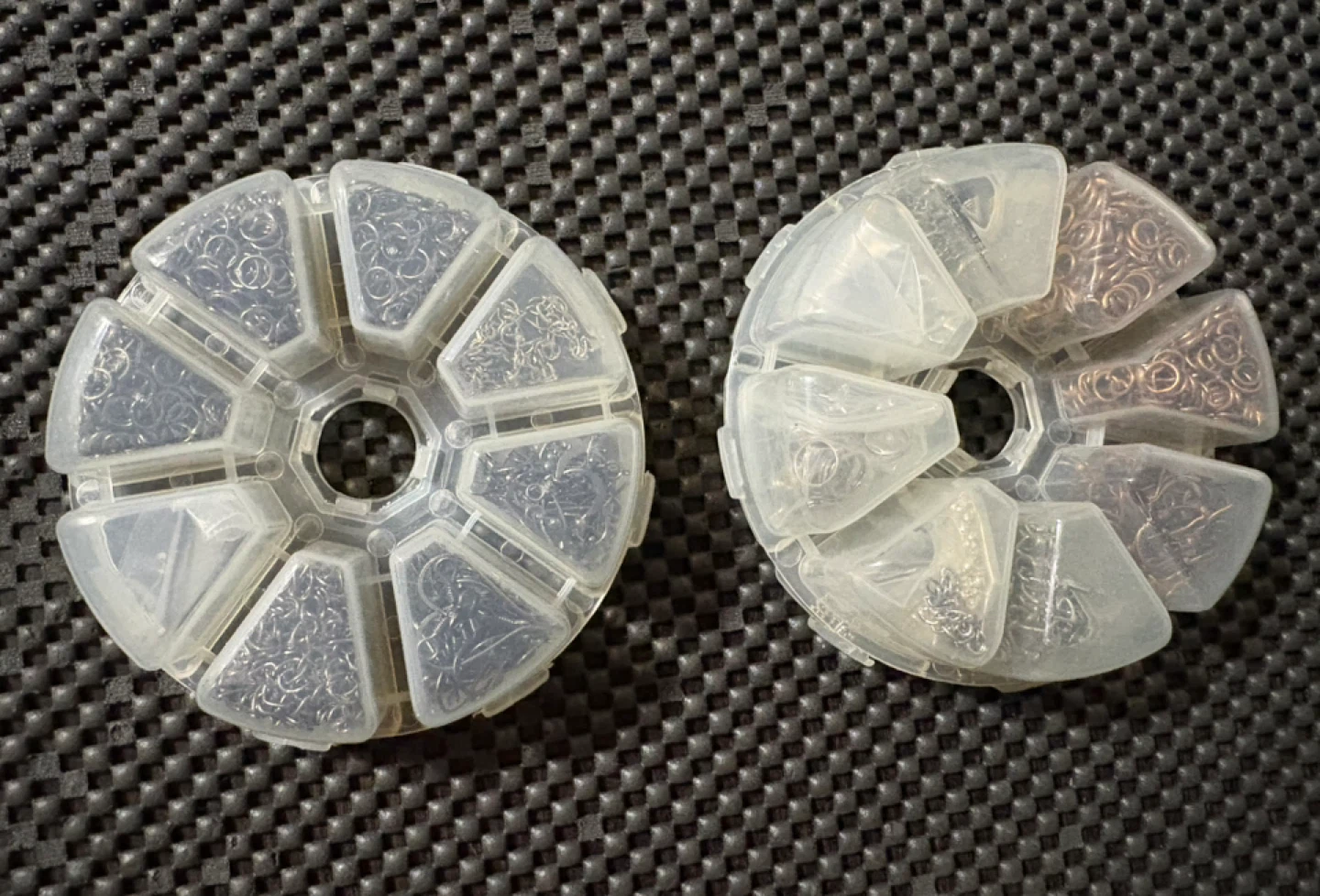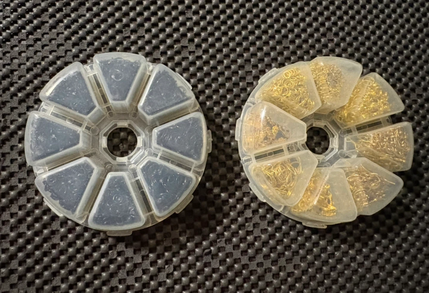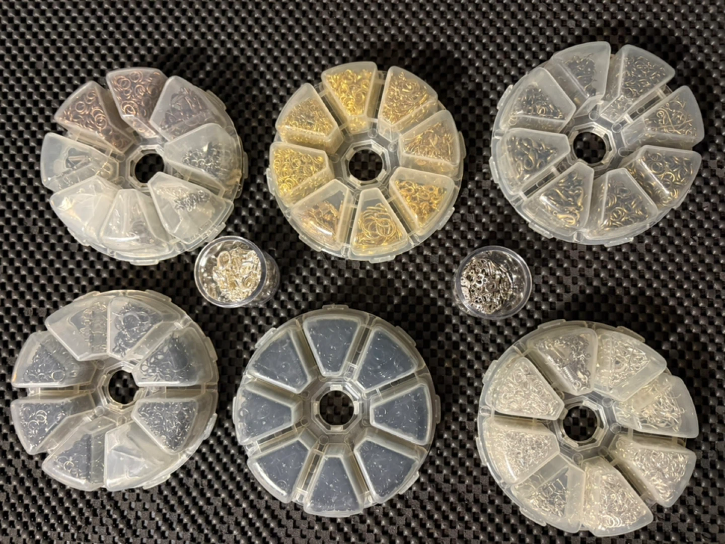 Set of organizer wheels filled with assorted jewelry findings $130