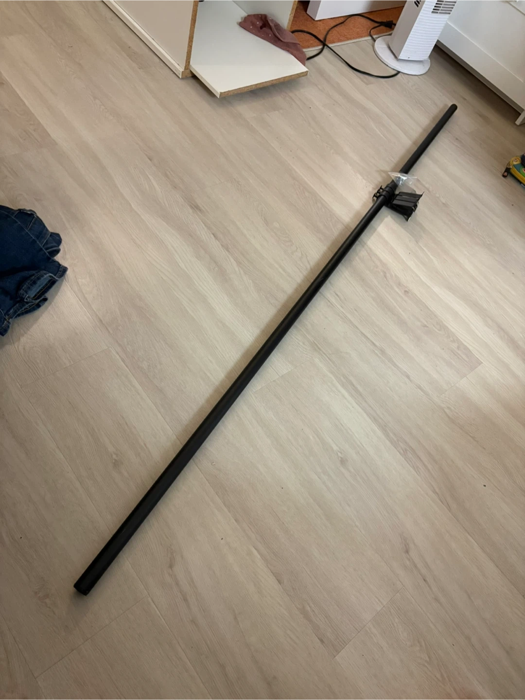 A black curtain rod with mounting hardware included. It's a simple and functional solution for hanging curtains. This rod is suitable for most standard windows. Size: 180 cm