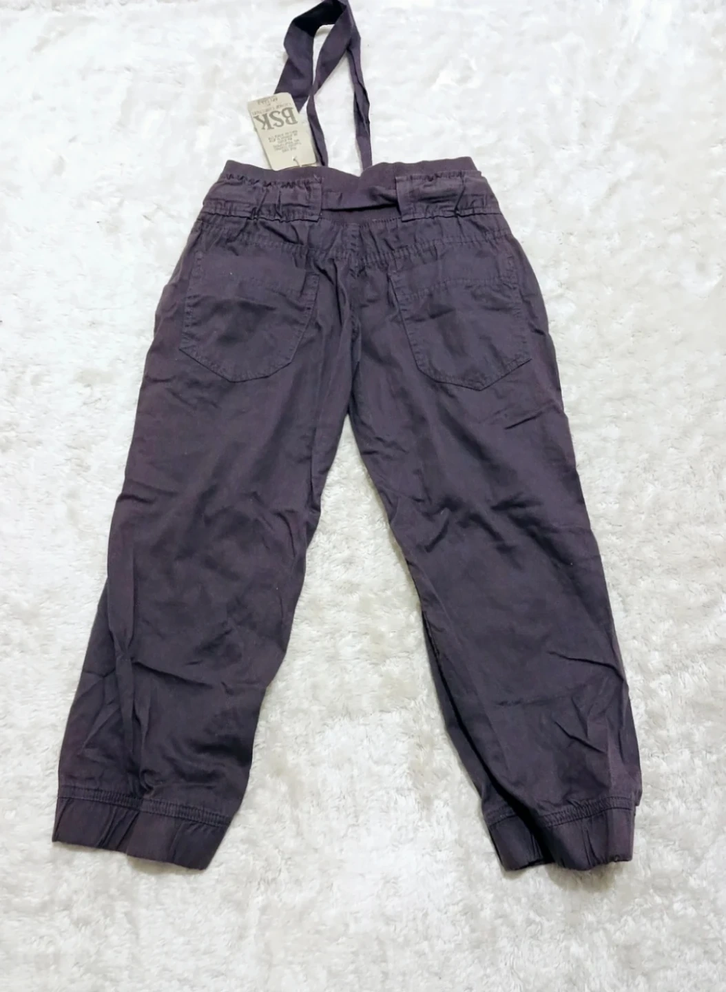 These BSK capri pants are a stylish addition to any wardrobe! They come in a lovely purple colour and feature a comfortable design. Perfect for casual outings or everyday wear.
