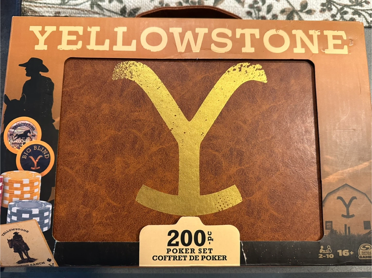 Selling a Yellowstone 200-piece poker set! It comes with 200 poker chips, 3 player chips, 1 set of Yellowstone playing cards, and 1 carrying case. The set also includes an instruction sheet. Perfect for fans of the show!