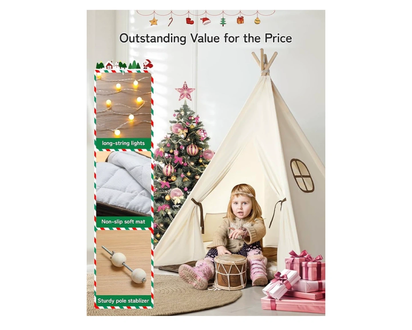 This canvas play tent is perfect for kids! It's easy to fold and assemble, making it convenient for storage and setup. The all-cloth wrapping provides improved slip resistance for greater stability. It creates a fun and imaginative space for your little ones to play!